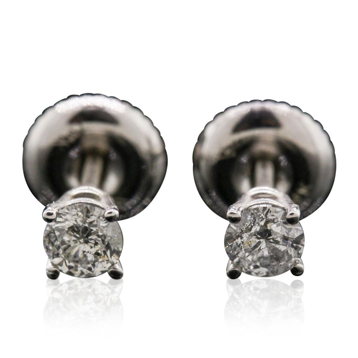 One pair of stud earrings featuring: 14KT White Gold with a total weight of 0.50 grams, and diamonds with a total weight of 0.38ctw.