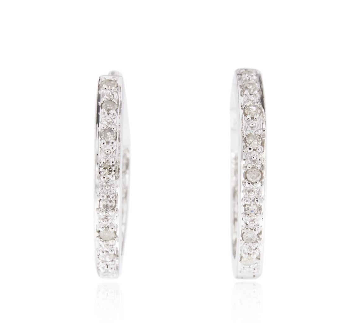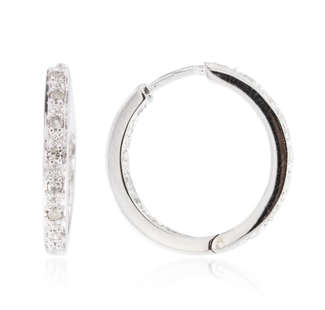 One pair of earrings featuring: 14KT white gold weighing 3.59 grams containing pave set round diamonds with a total weight of 0.40ct.