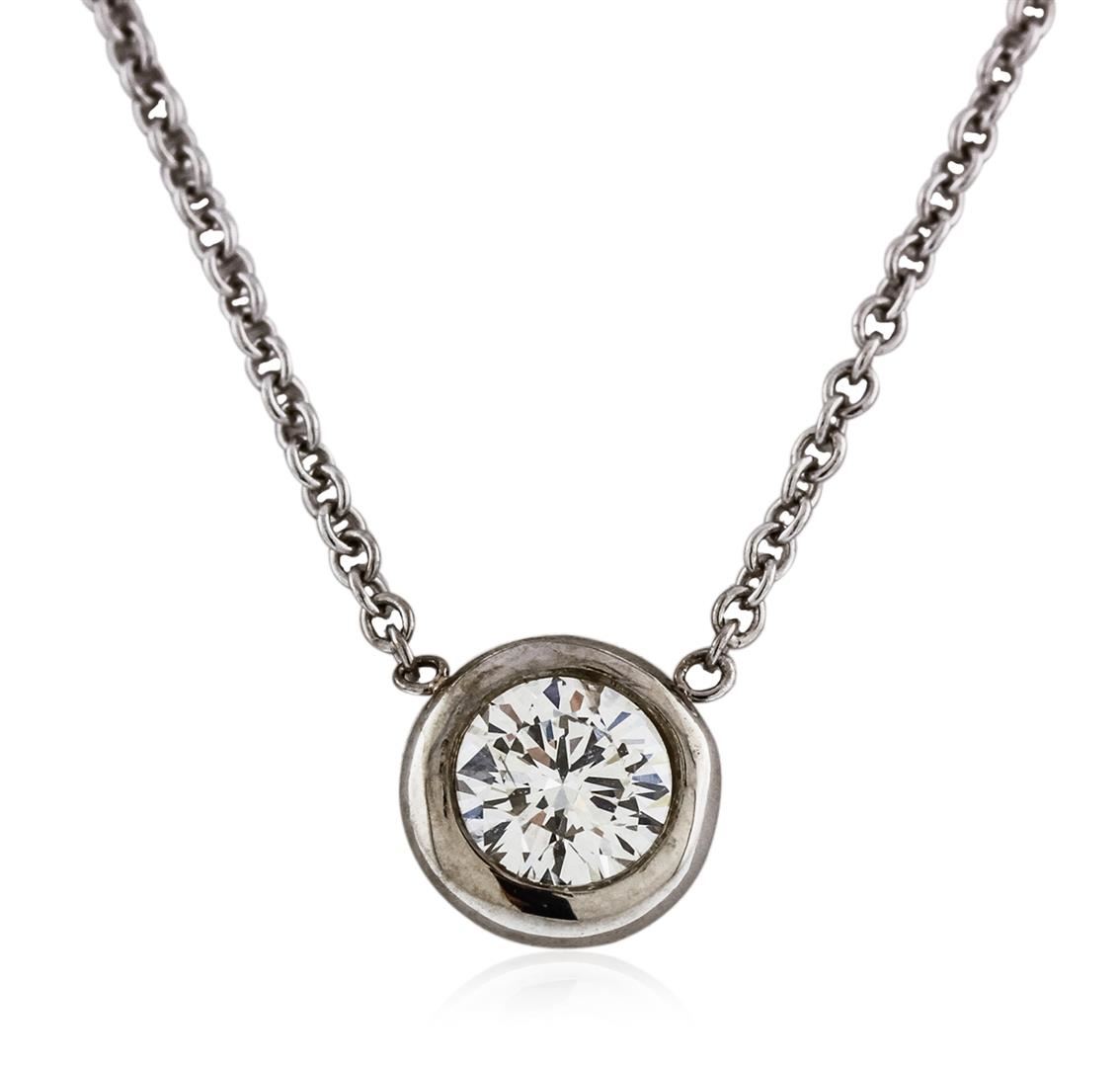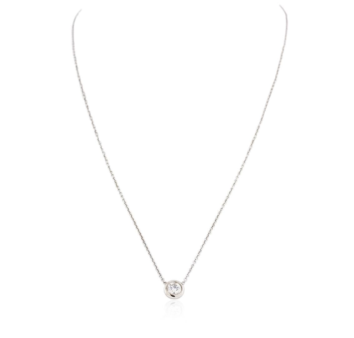 One solitaire necklace featuring: 14KT white gold weighing 2.30 grams containing one bezel set round diamond with a total weight of 0.40ct.
