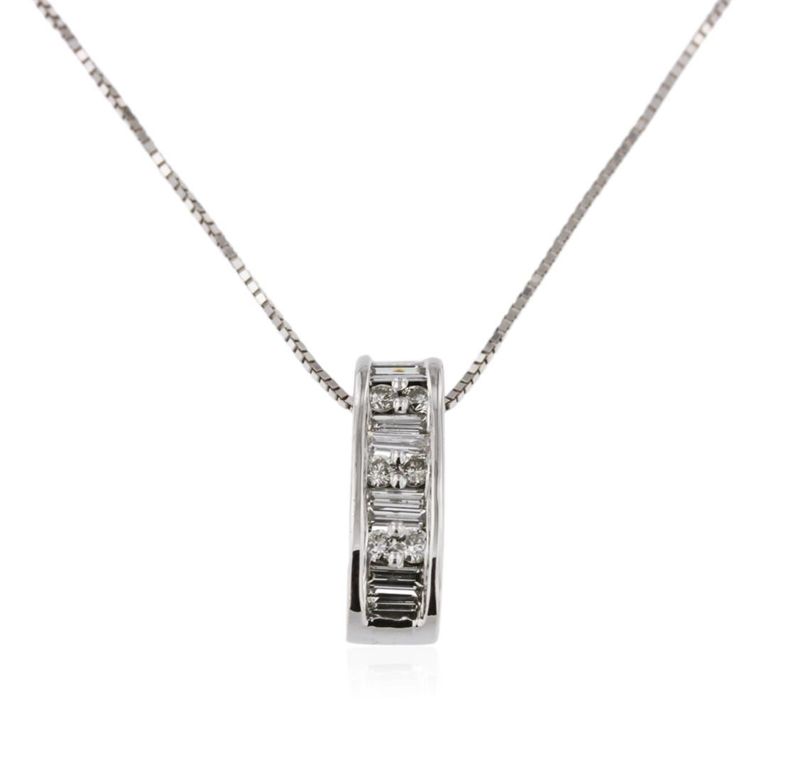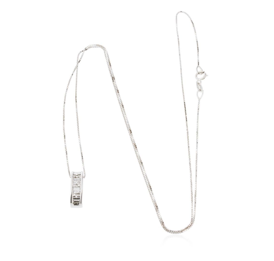 One pendant with chain featuring: 14KT white gold weighing 2.68 grams containing diamonds with a total weight of 0.40ct.