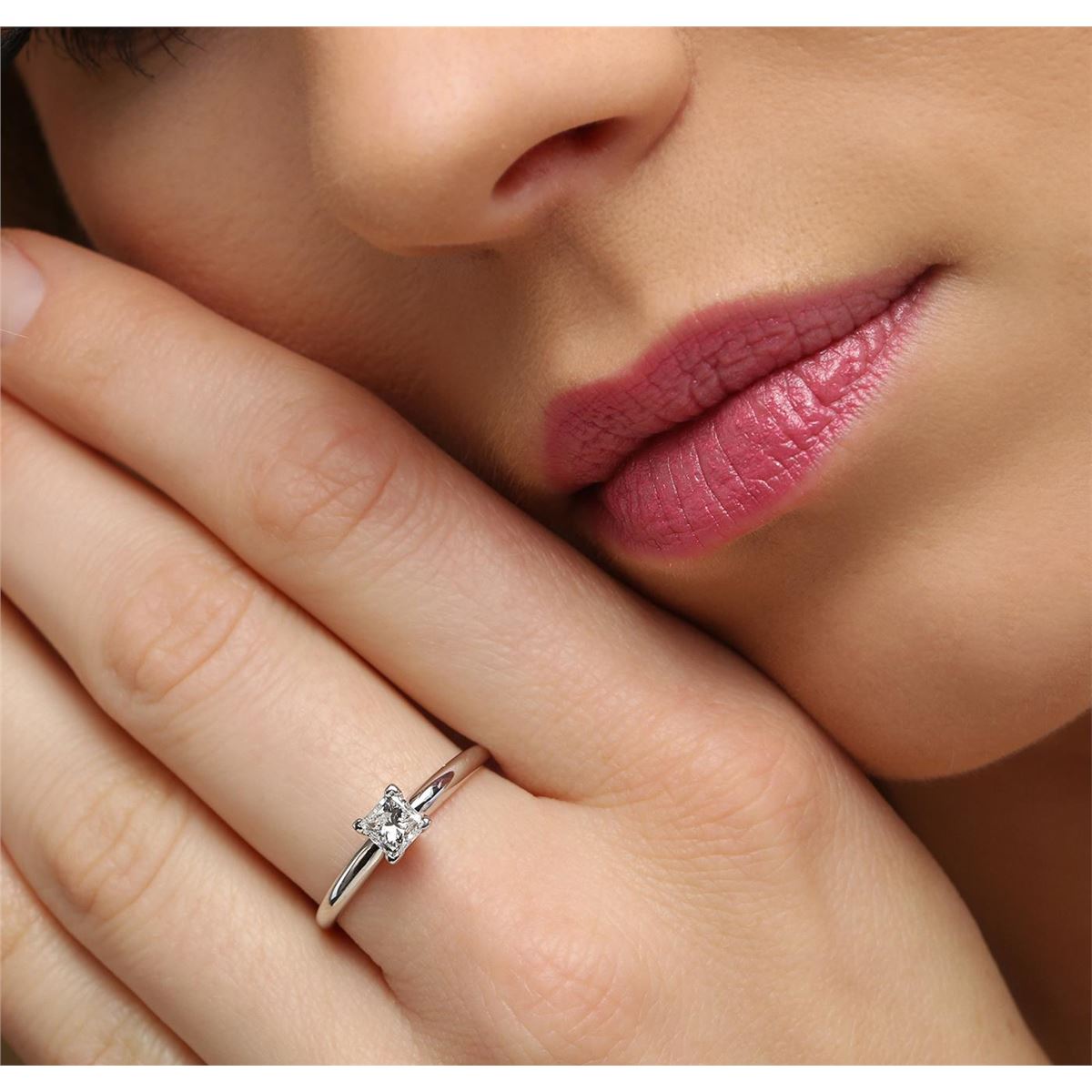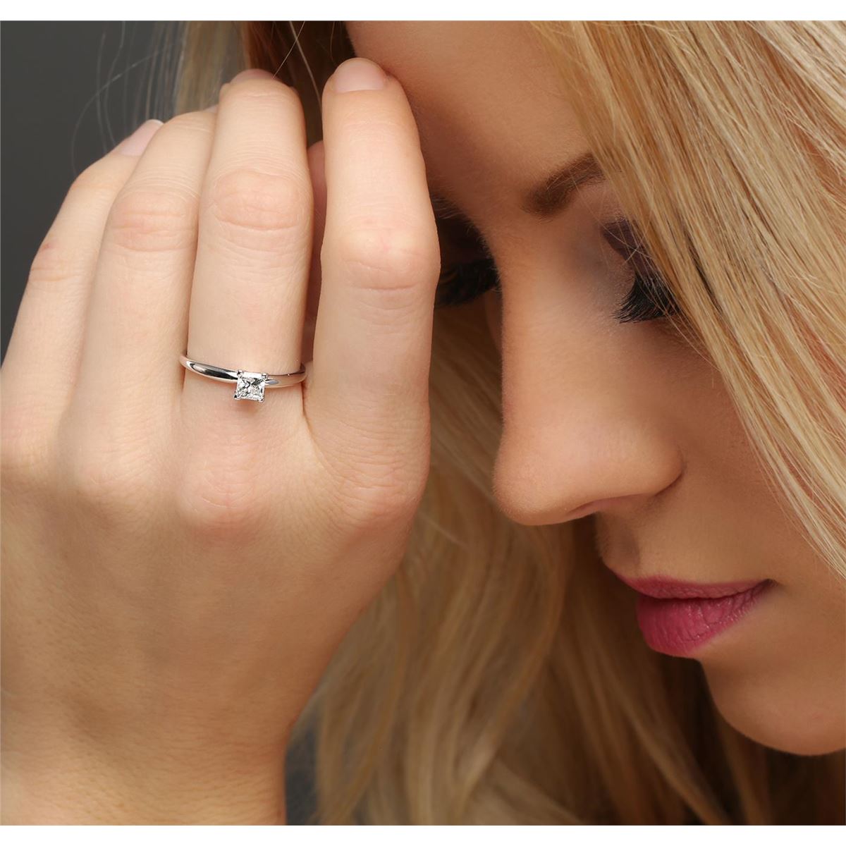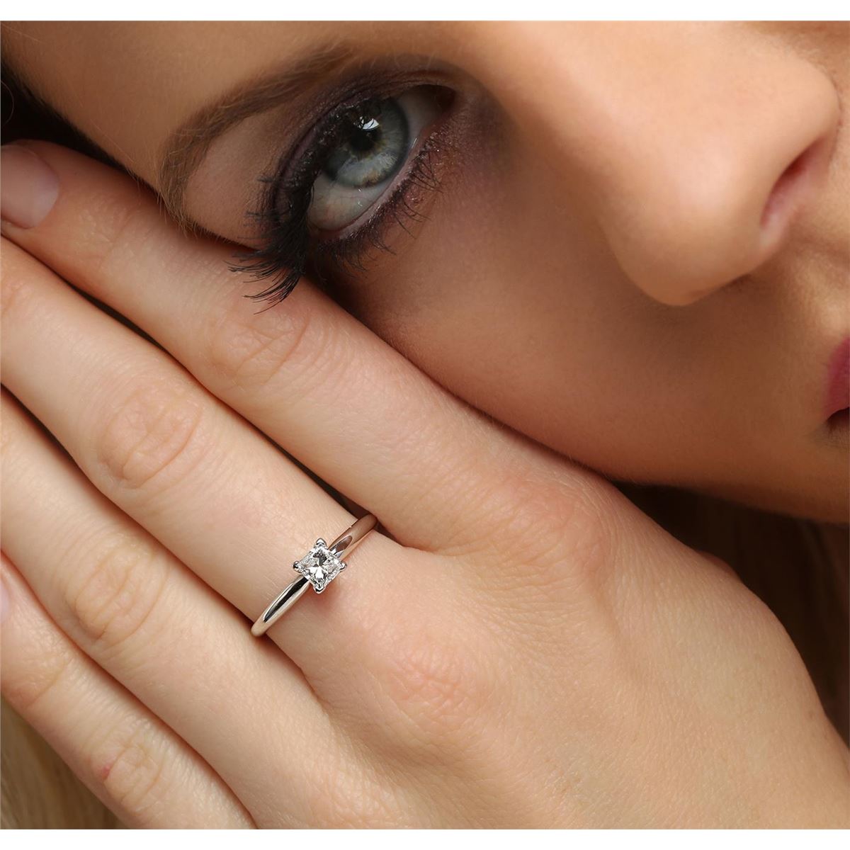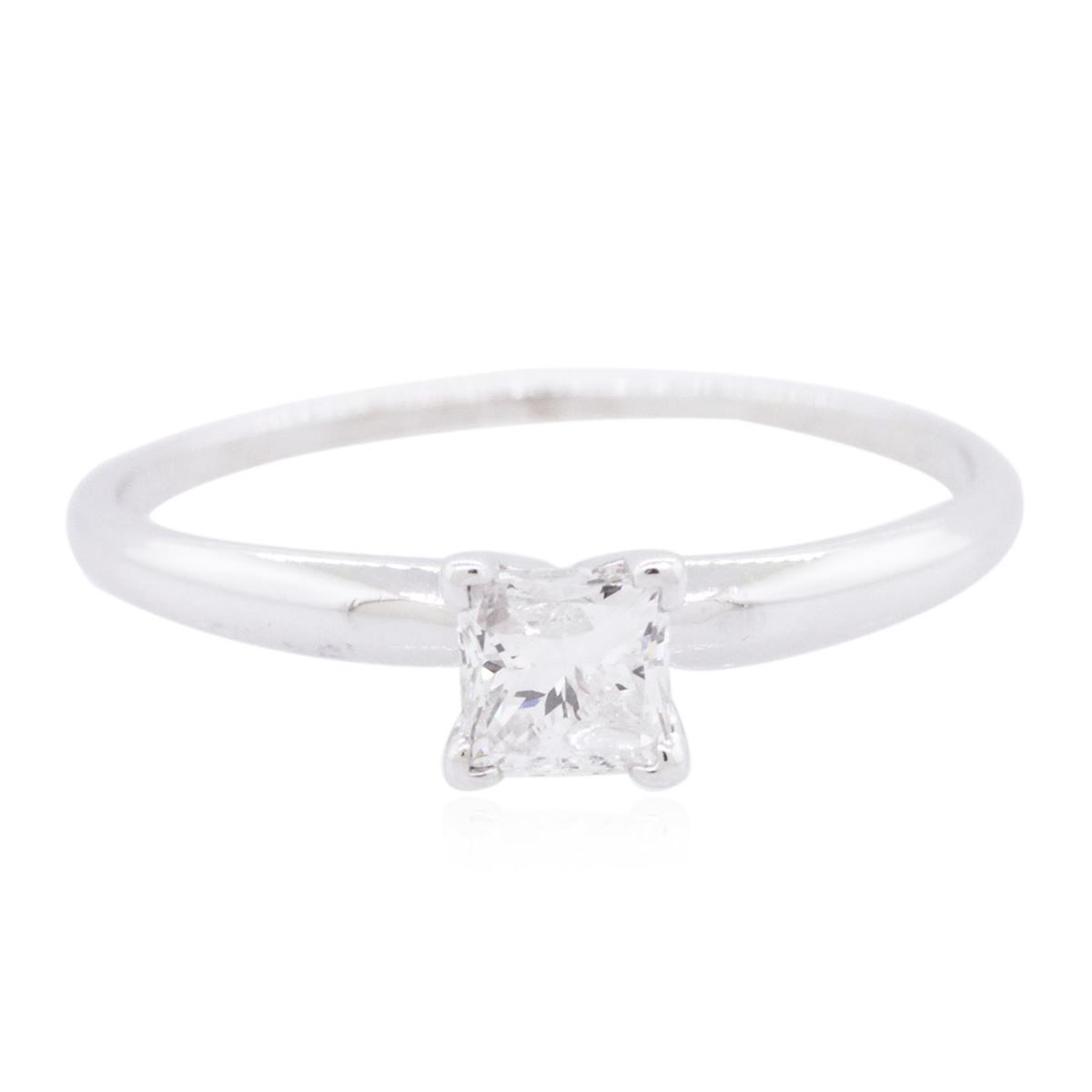 One solitaire ring featuring: 14KT white gold weighing 1.90 grams containing one prong set princess cut diamond with a total weight of 0.40ct.