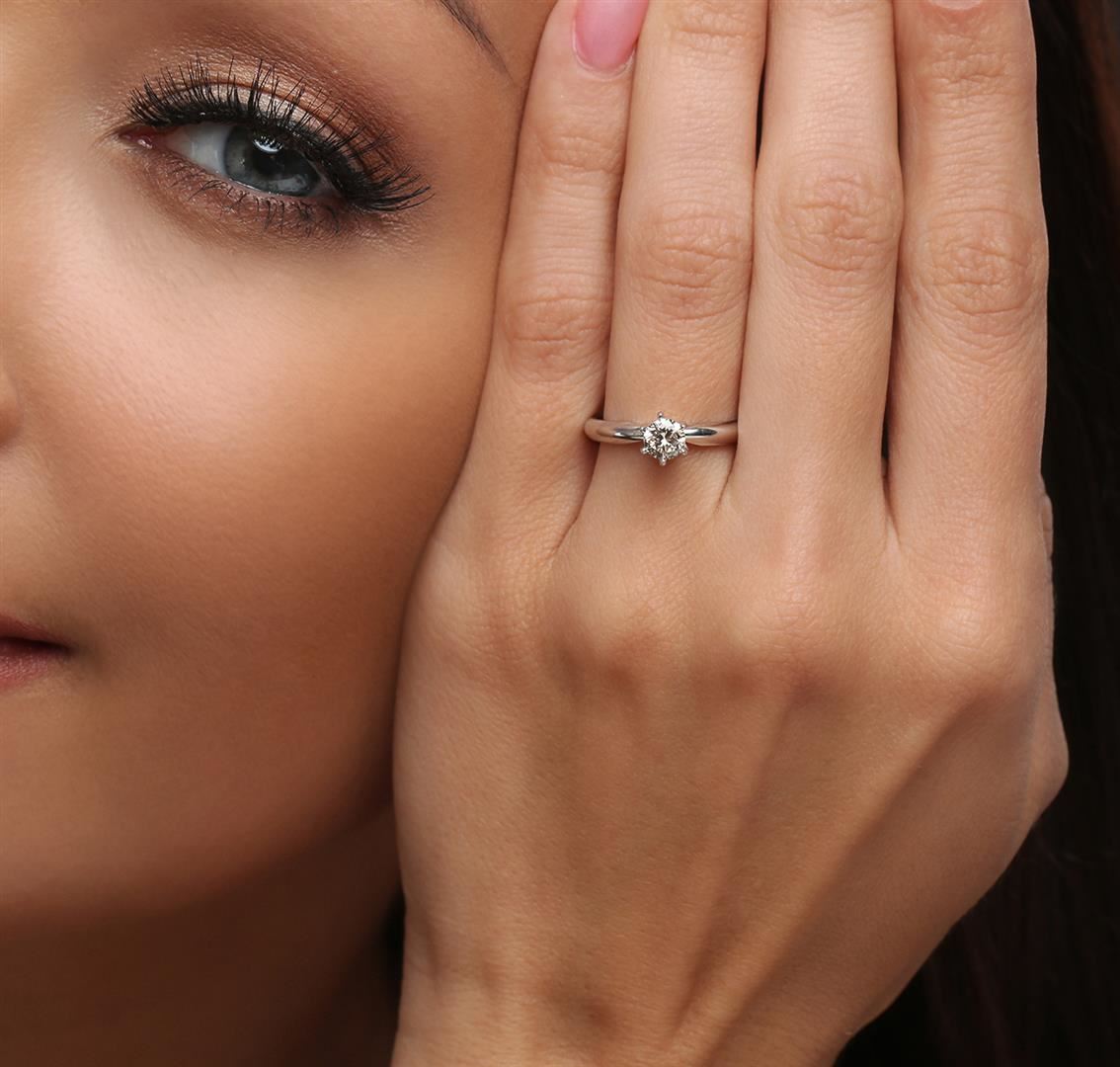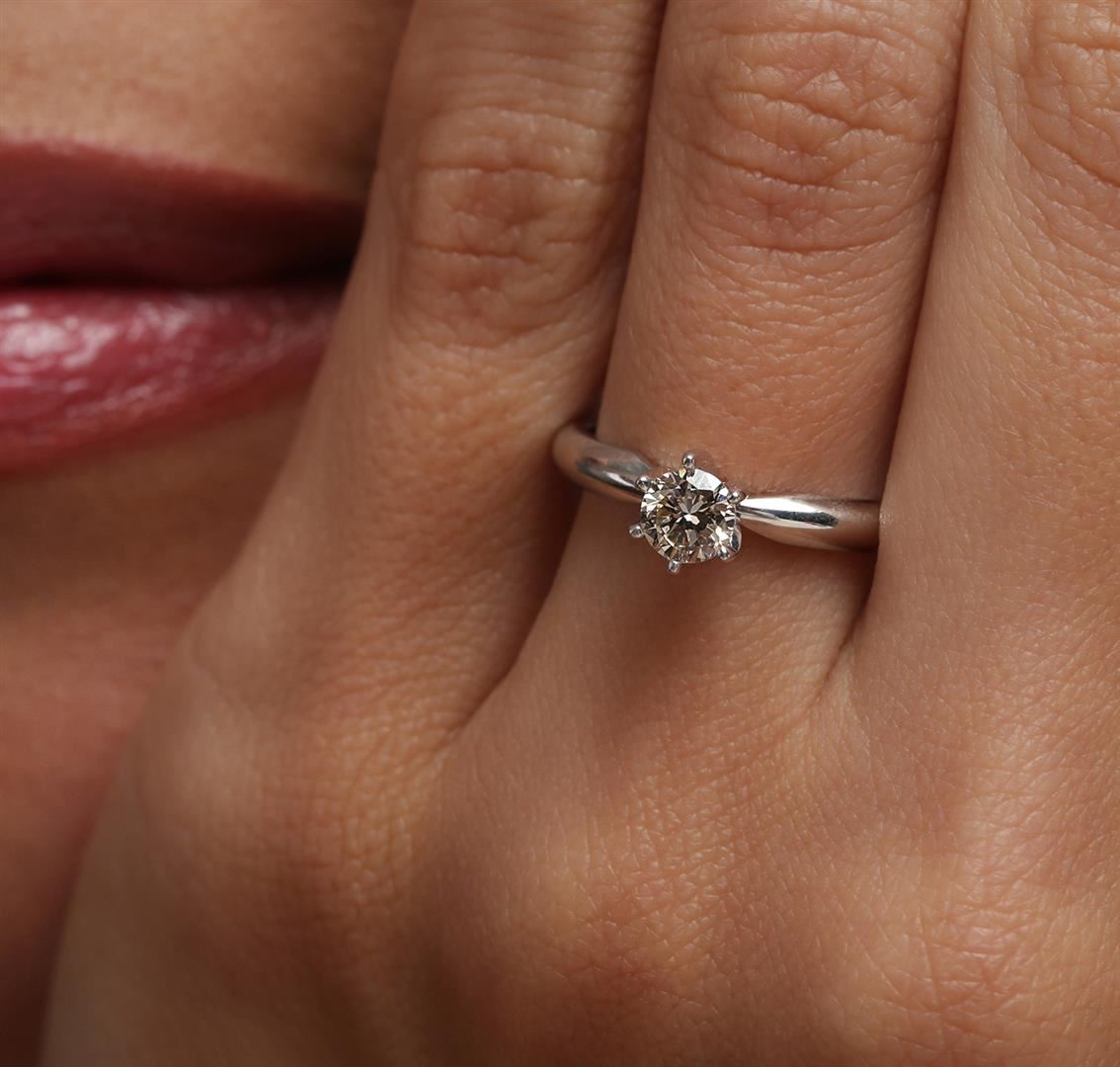 One solitaire ring featuring: 14KT white gold weighing 2.90 grams containing one prong set round diamond with a total weight of 0.41ct.