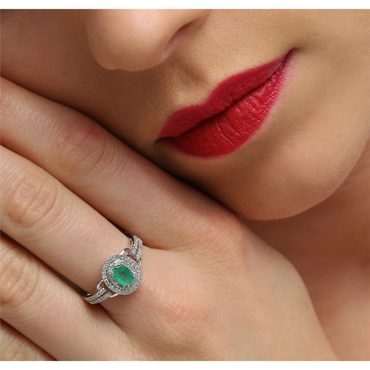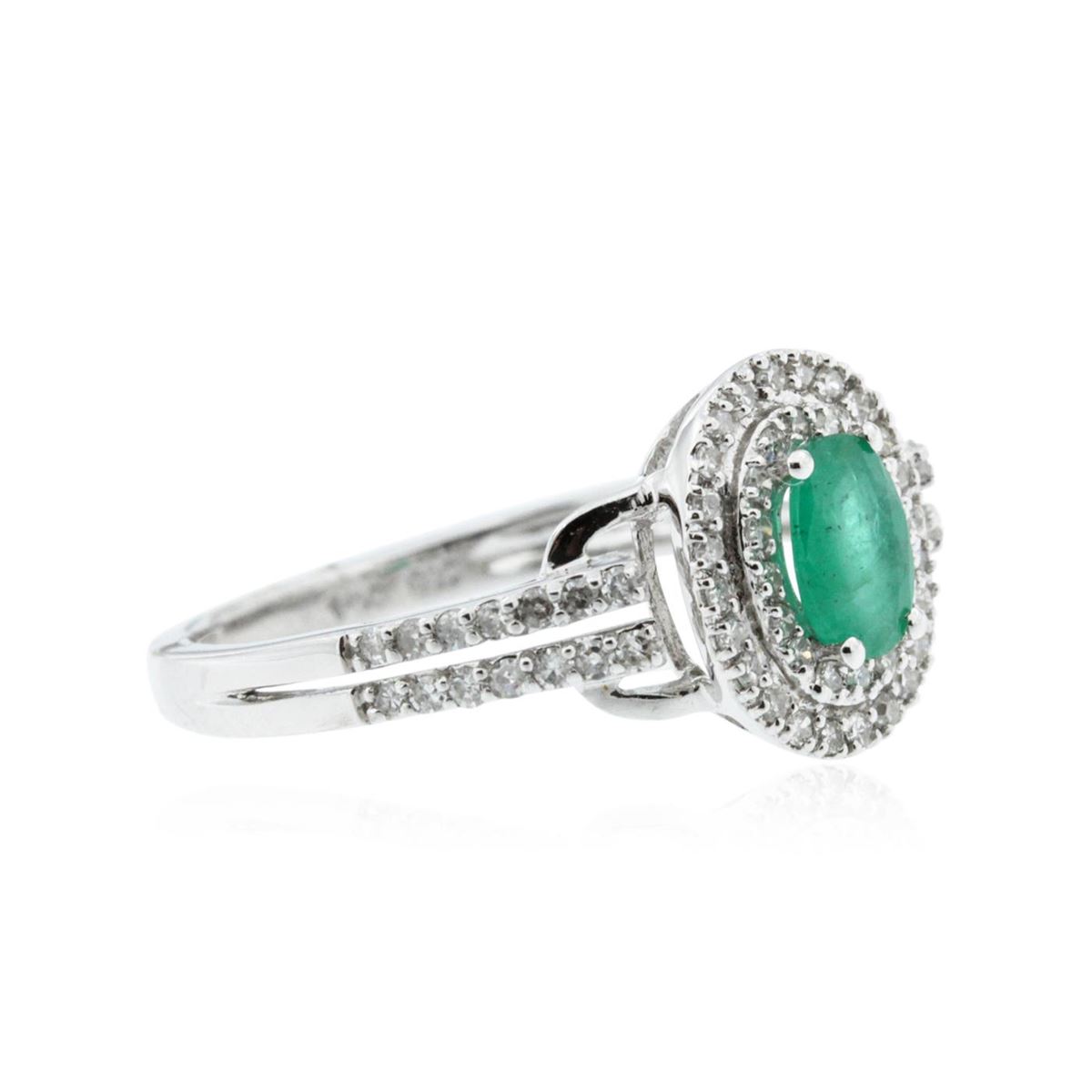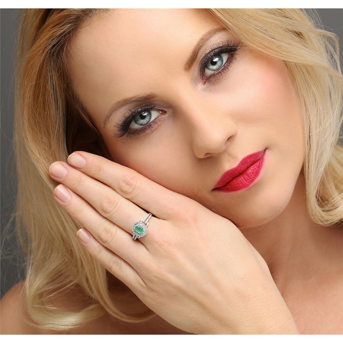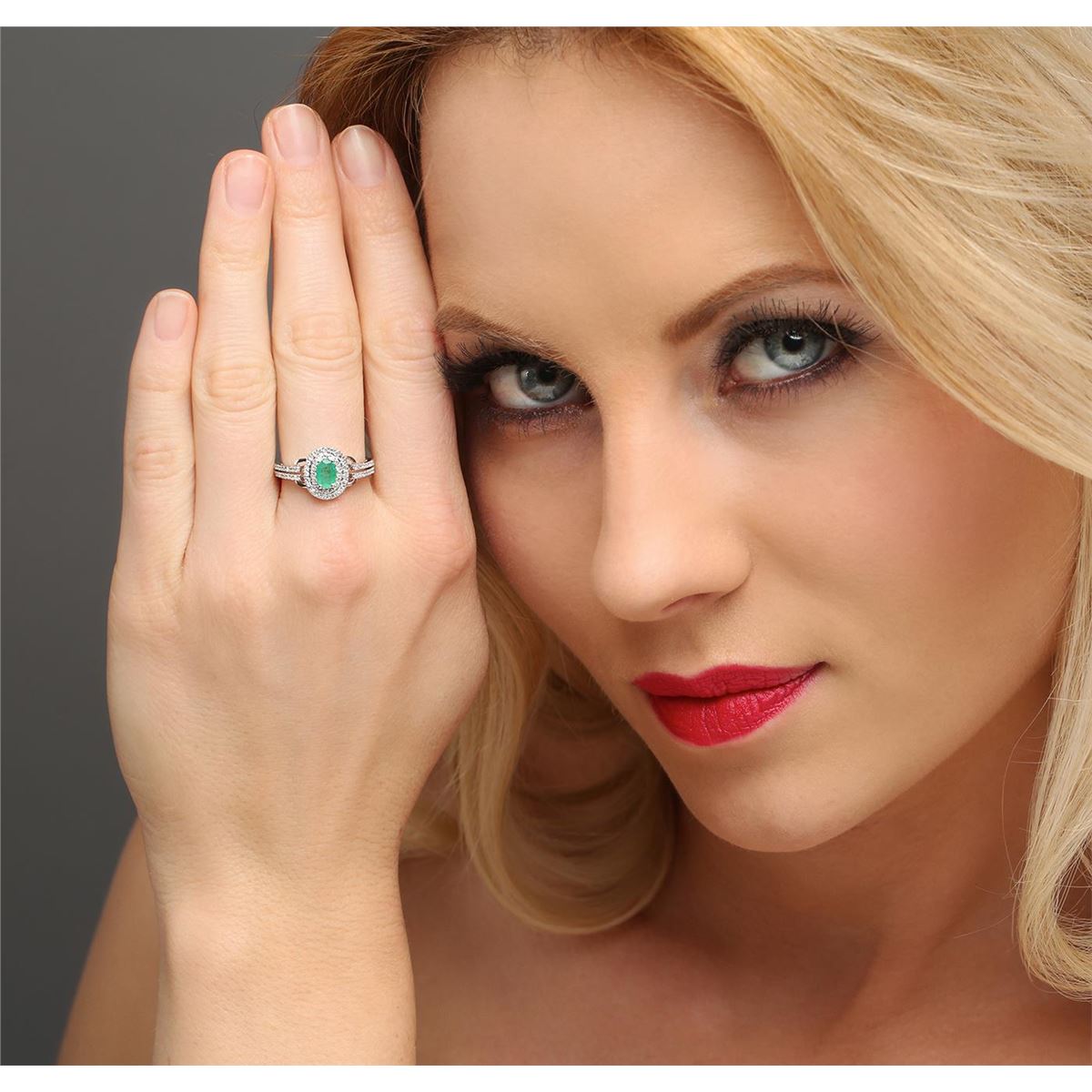One ring featuring: 14KT white gold weighing 2.68 grams containing one emerald center stone with a total weight of 0.48ct and 68 round diamonds with a total weight of 0.35ct.