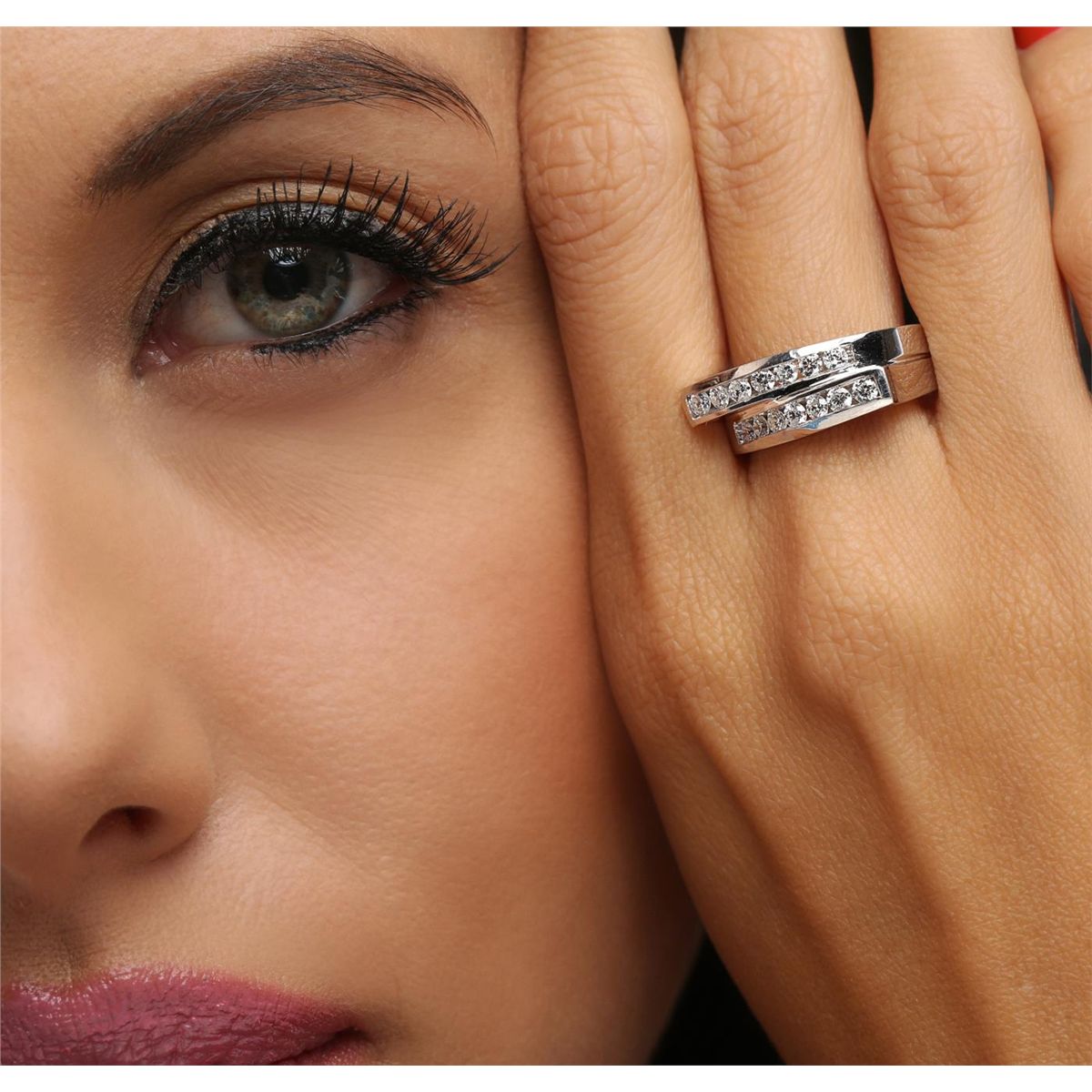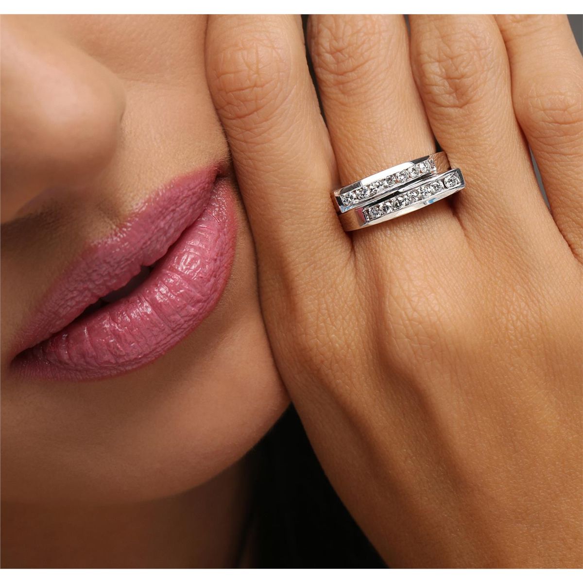 One electronically tested 14KT white gold ladies combination cast & assembled diamond ring with a bright polish finish. Identified with markings of "14K". Condition is new. Containing: Fourteen channel set round brilliant cut diamonds, measuring 2.10 - 2.10 x 1.26mm (depth est.) approximate total weight of 14 Stones = 0.48ct. Clarity: SI-2 to I-1. Color: I - J, Cut is Good. All diamonds are graded in the mounting, unless otherwise stated. Total Weight of Diamonds 0.48ct. Total Weight of Ring 8.00 grams. GGL Appraised at $3,525.00.