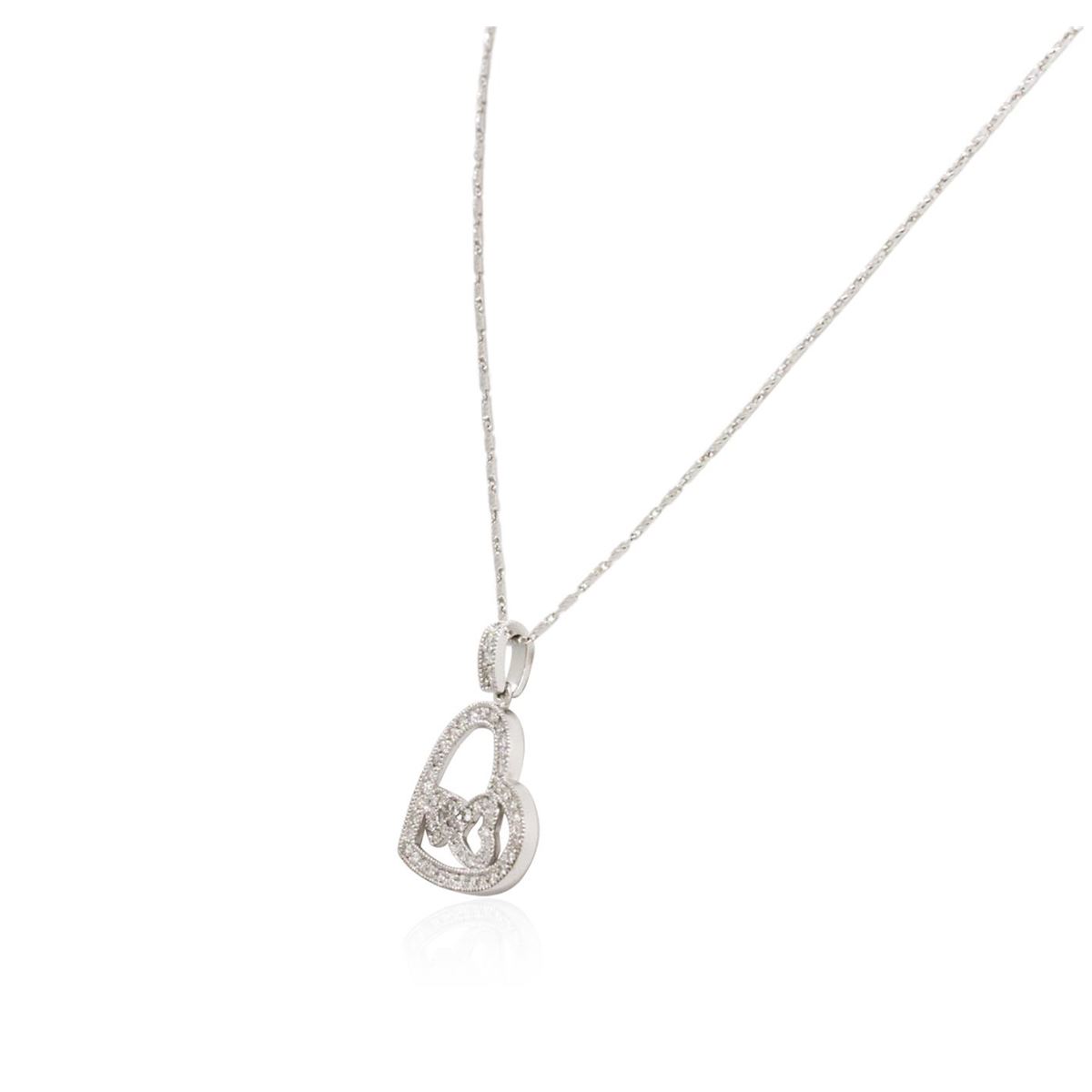 One electronically tested 14KT white gold ladies combination cast & assembled pendant & chain 18.0" long, light fancy link with a lobster claw clasp with a bright polish finish. Identified with markings of "585". Condition is new. Containing: Sixty-One prong set round brilliant cut diamonds, measuring 1.30 - 1.30 x 0.78mm (depth est.) approximate total weight of 61 Stones = 0.49ct. Clarity: I-1 to I-2. Color: I - J, Cut is Good. All diamonds are graded in the mounting, unless otherwise stated. Total Weight of Diamonds 0.49ct. Total Weight of Pendant & Chain 6.60 grams. GGL Appraised at $3,295.00.