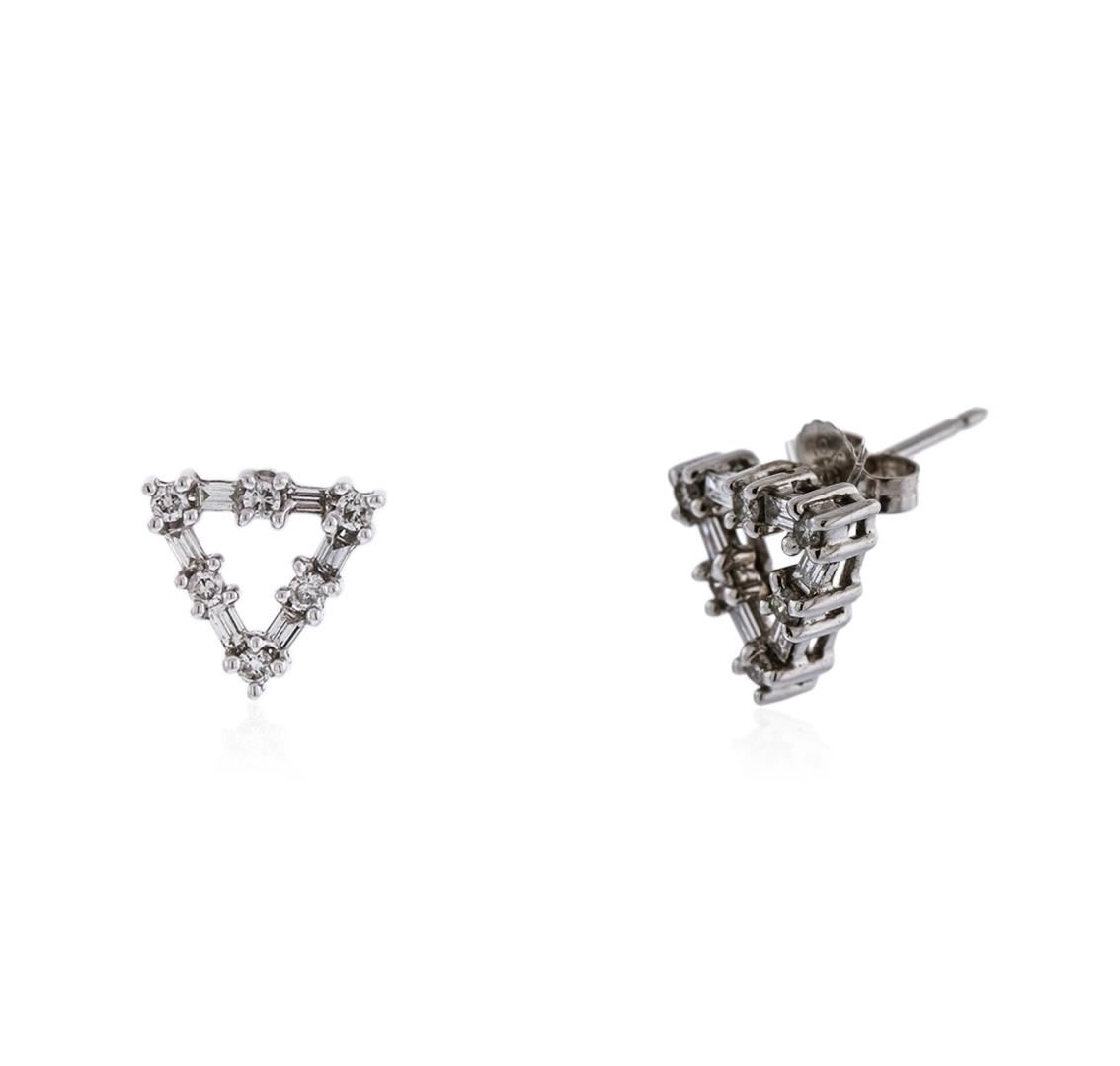 One pair of earrings featuring: 14KT white gold weighing 2.00 grams containing diamonds with a total weight of 0.50ct.