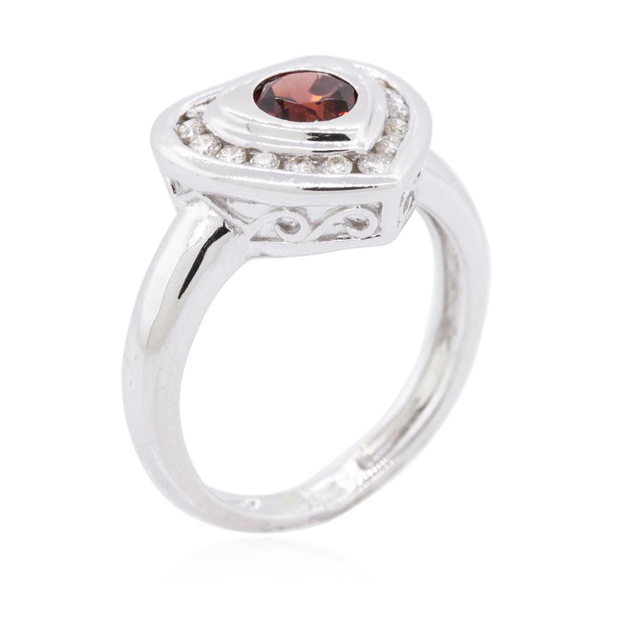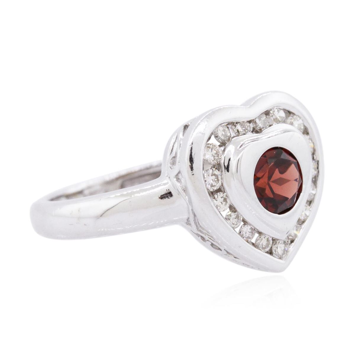 One ring featuring: 14KT white gold weighing 5.10 grams containing one garnet center stone with a total weight of 0.50ct and round diamonds with a total weight of 0.25cts.