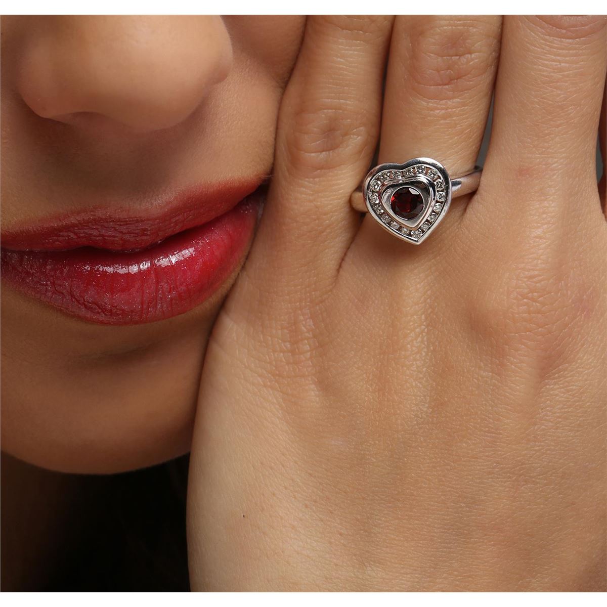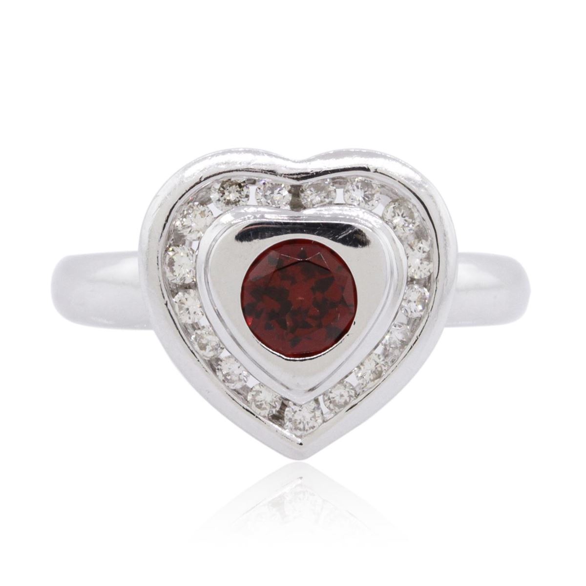 One ring featuring: 14KT white gold weighing 5.10 grams containing one garnet center stone with a total weight of 0.50ct and round diamonds with a total weight of 0.25cts.