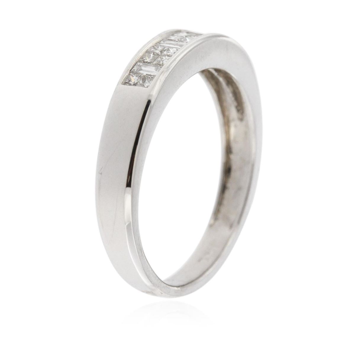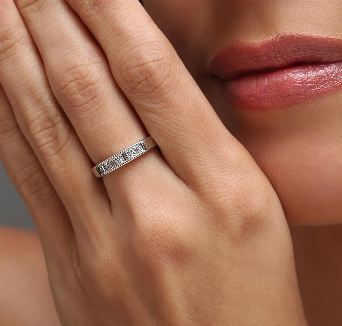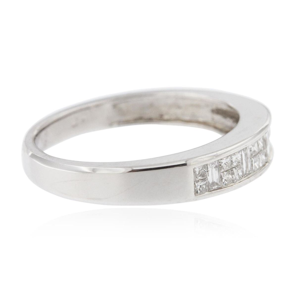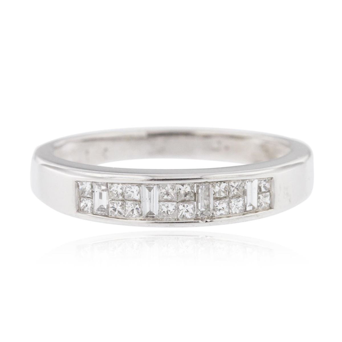 One ring featuring: 14KT white gold weighing 2.50 grams containing invisible set princess cut diamonds and channel set baguette cut diamonds with a total weight of 0.50ct.