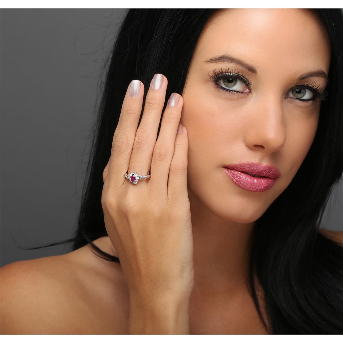 One ring featuring: 14KT white gold weighing 2.55 grams containing one ruby center stone with a total weight of 0.51ct and 18 baguette/round cut diamonds with a total weight of 0.34cts.