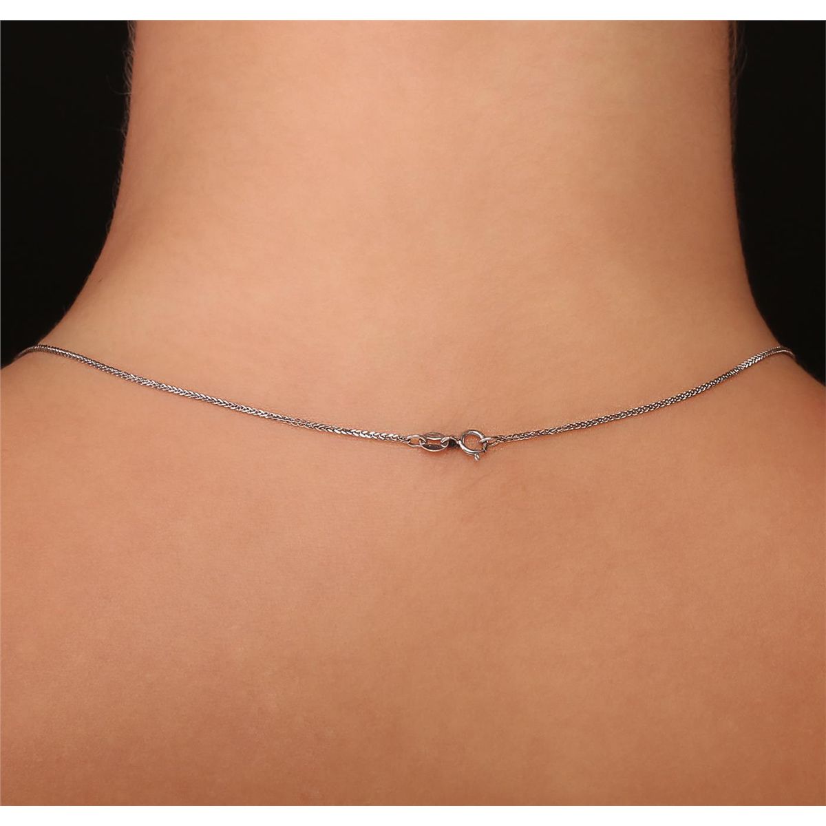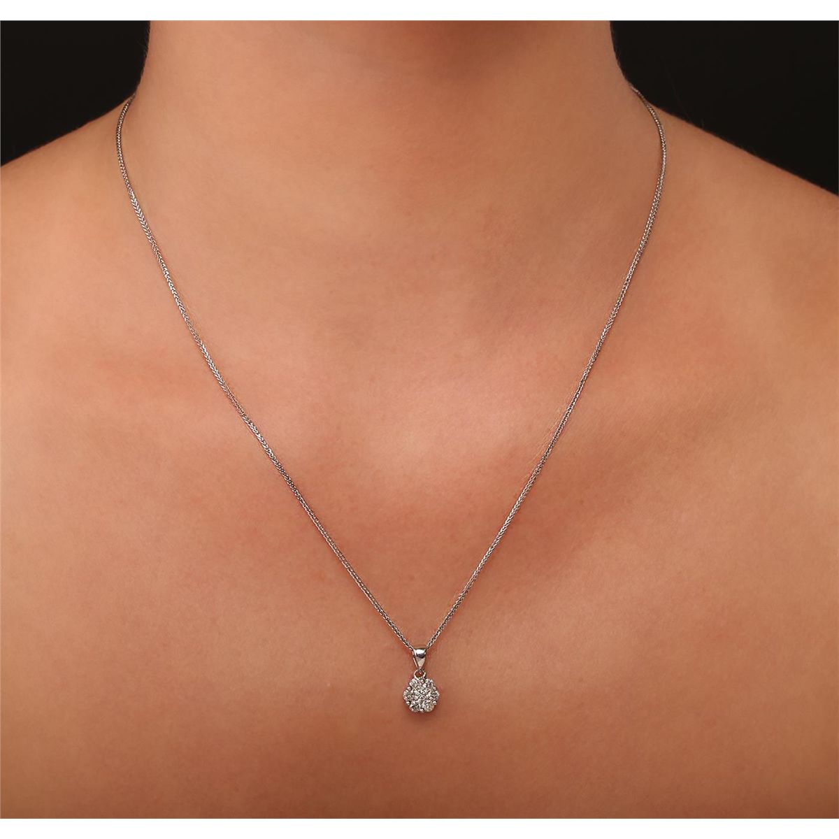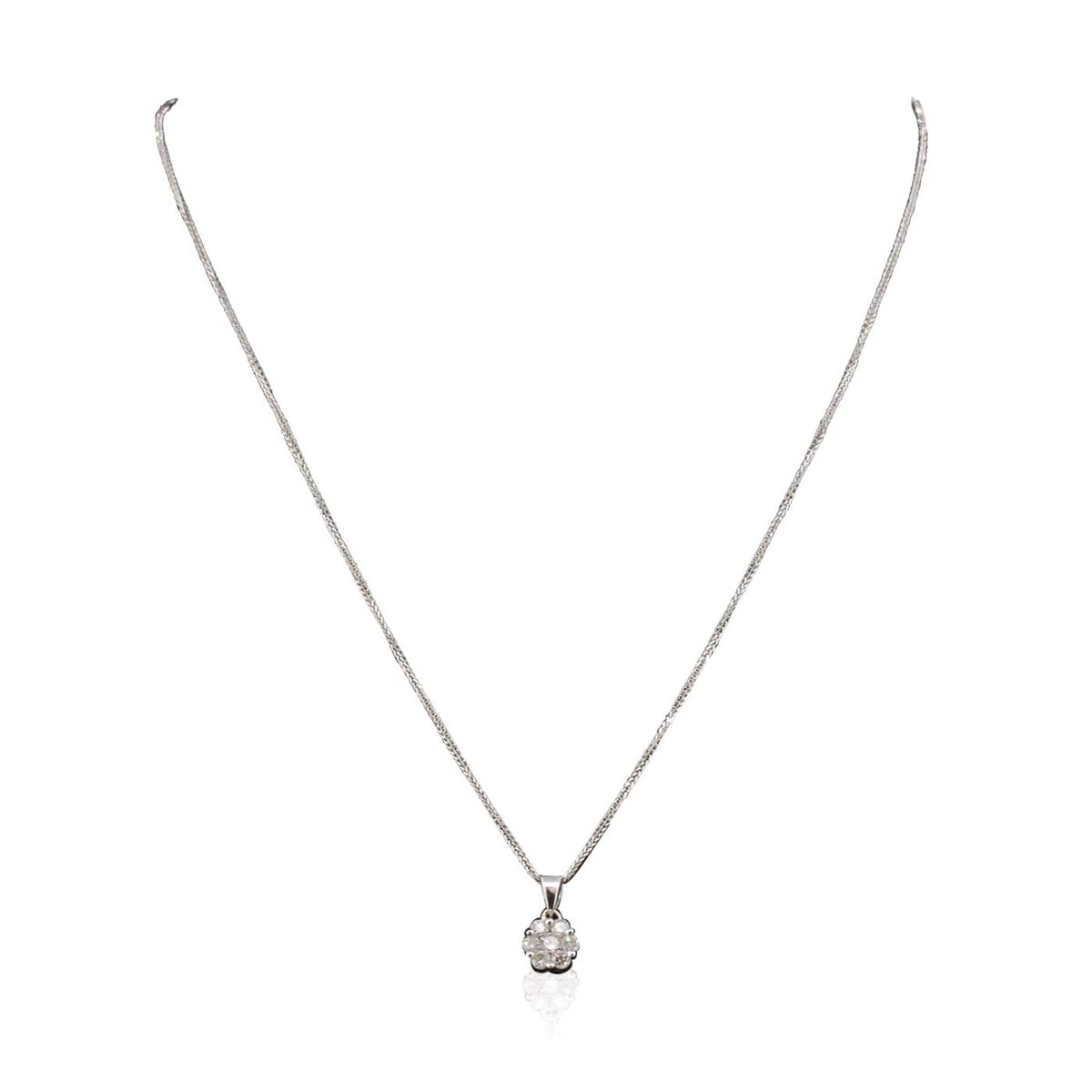 One electronically tested 14KT white gold Ladies combination cast & die struck pendant & chain 17.0" long, light fancy cable link with a spring ring clasp with a bright polish finish. Identified with markings of "14K". Condition is very good. Containing: Seven prong set round brilliant cut diamonds, measuring 3.00 - 2.50 x 1.65mm (depth est.) approximate. Total Weight of 7 Stones = 0.53ct. Clarity: I-1 to I-2. Color: J - K, Cut is Good. Total Weight of Diamonds 0.53ct. Total Weight of Pendant & Chain 2.90gm. GGL Appraised at $2,020.00.