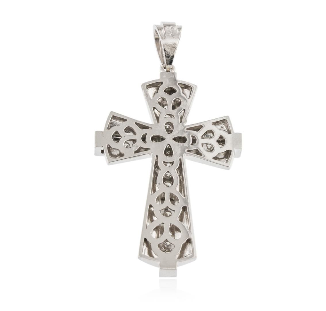 One cross pendant featuring: 14KT white gold weighing 8.30 grams containing diamonds with a total weight of 0.55ct.