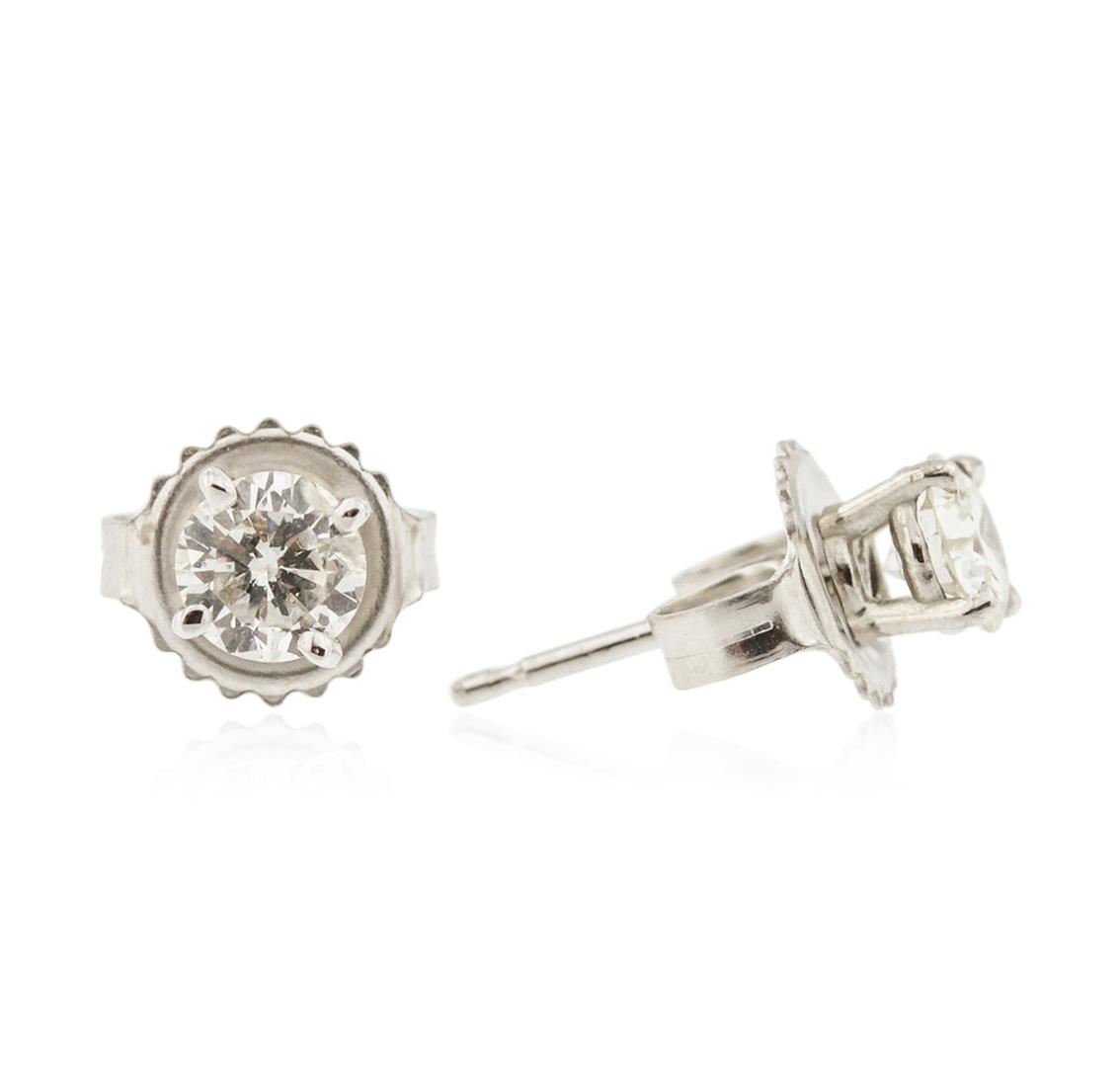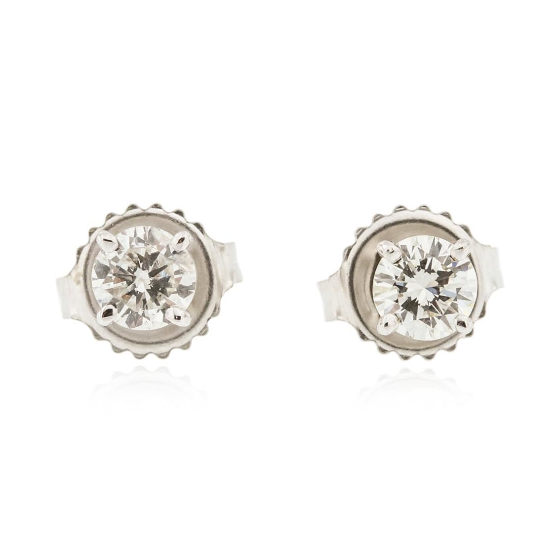 One pair of stud earrings featuring: 14KT white gold weighing 0.70 grams containing two diamonds with a total weight of 0.56ct.