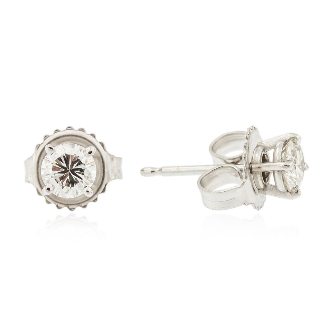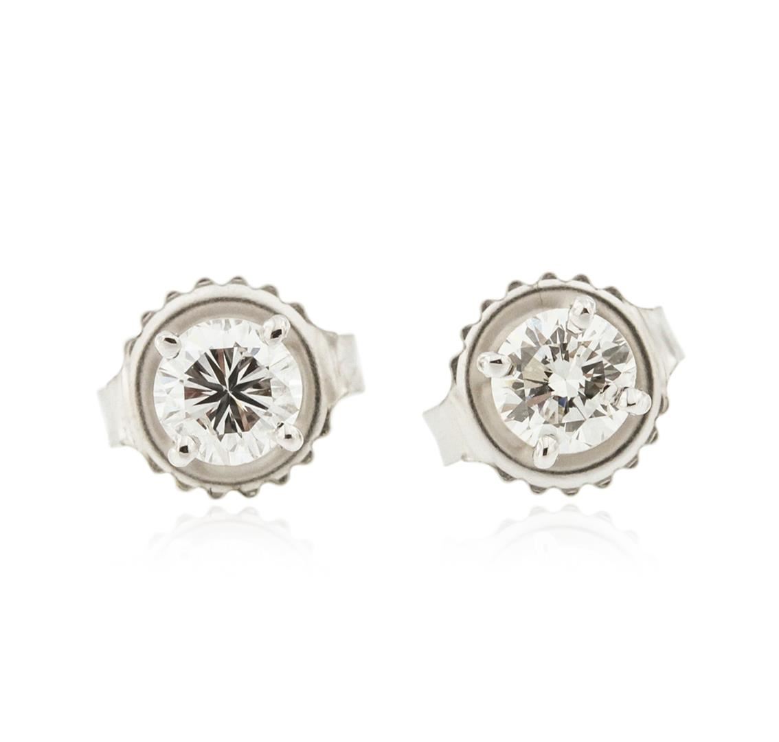 One pair of stud earrings featuring: 14KT white gold weighing 1.00 grams containing two diamonds with a total weight of 0.56ct.