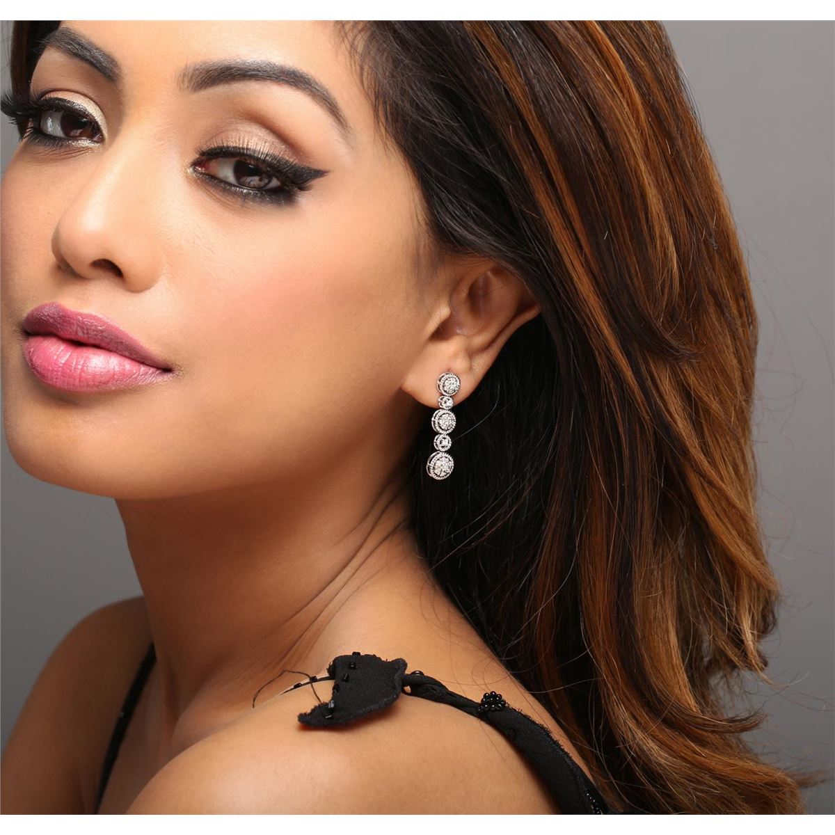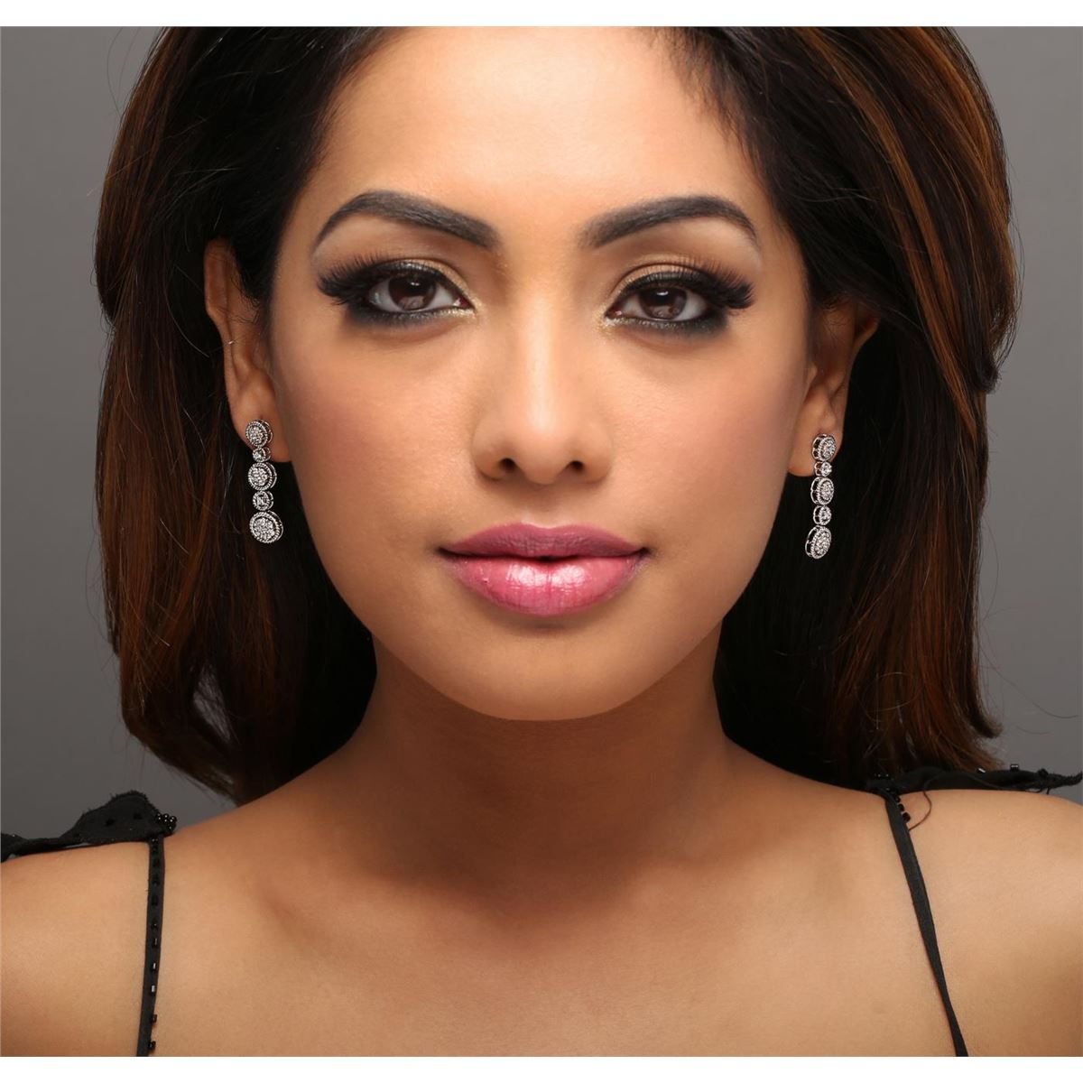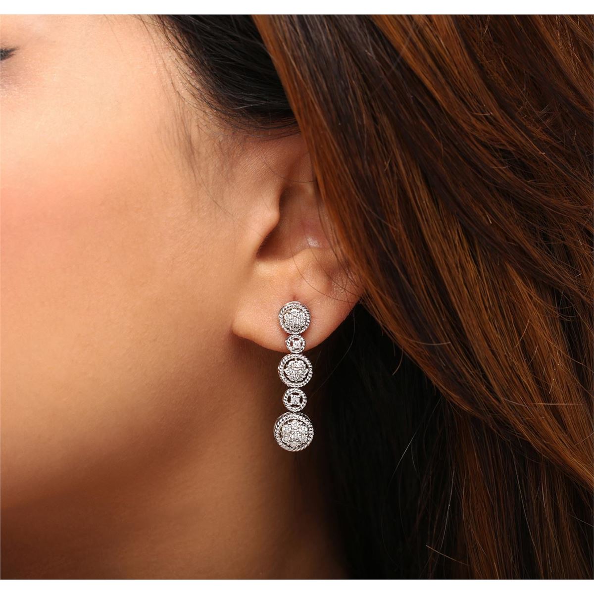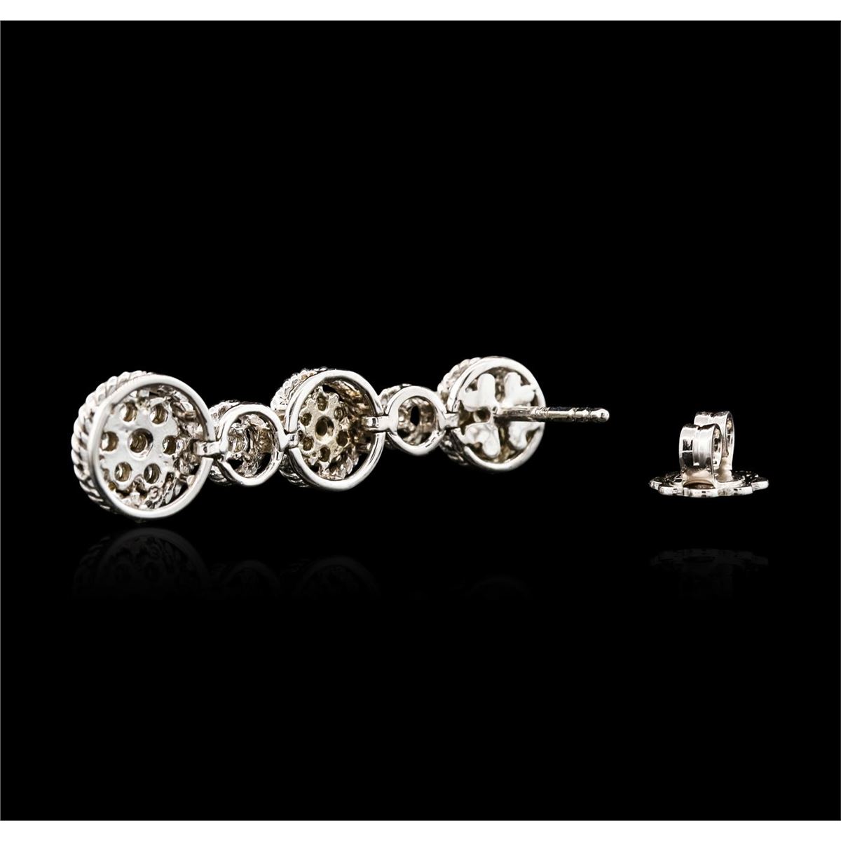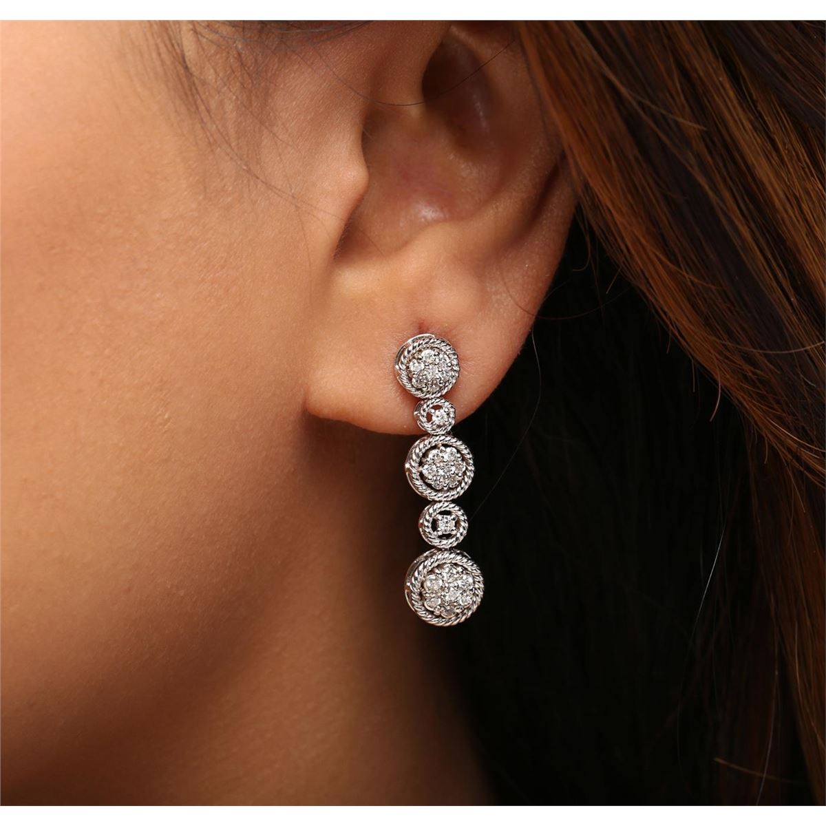 One pair electronically tested 14KT white gold ladies combination cast & assembled diamond earrings with friction posts with a bright polish finish. Identified with markings of 585. Condition is new. Containing: Forty-Six prong set round brilliant cut diamonds, measuring 1.50 - 1.50 x 0.90mm (depth est.) approximate total weight of 46 Stones = 0.57ct. Clarity: SI-1 to I-1. Color: I - J, Cut is Good. All diamonds are graded in the mounting, unless otherwise stated. Total Weight of Diamonds 0.57ct. Total Weight of Earrings 6.70 grams. GGL Appraised at $4,070.00.
