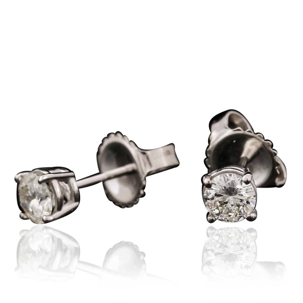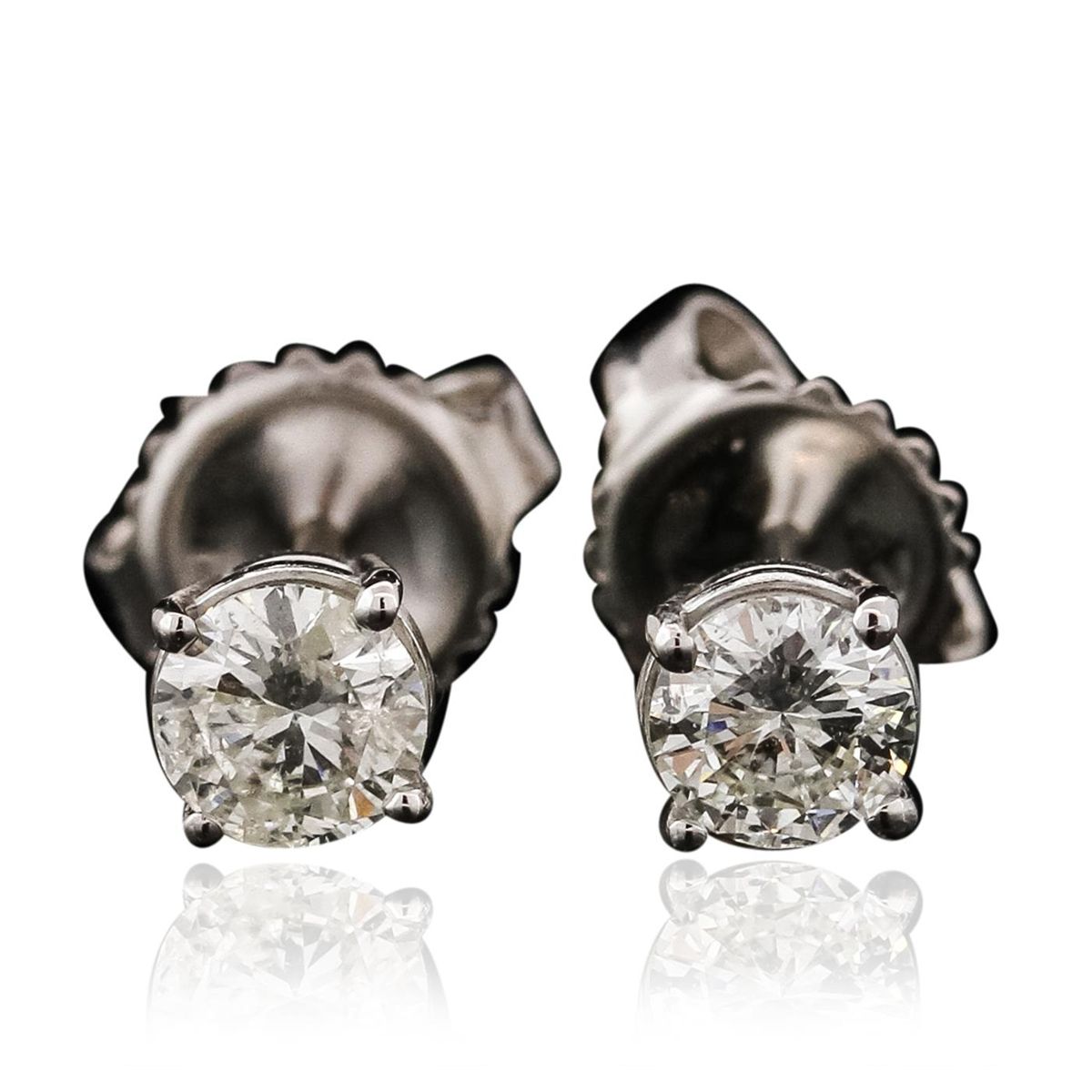 One pair of earrings featuring: 14KT white gold with a total weight of 1.00 grams, and diamond with a total weight of 0.57ct.