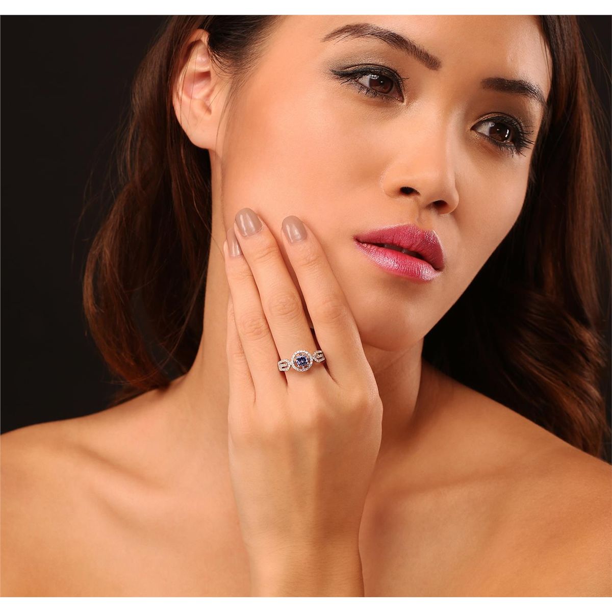 One electronically tested 14KT white gold Ladies cast ring with a bright polish finish. Condition is new. Identified with markings of "14K". Containing: One prong set round modified brilliant cut natural tanzanite, measuring 5.50 - 5.50 x 3.40 mm, approximate weight of 0.67ct., clarity is eye clean, type I, medium light, very slightly grayish, violet color, (GIA V 4/3), cut is very good. Colored gemstones are presumed to have been subjected to commonly used color/clarity enhancement processes. Ninety-Eight prong set round brilliant cut diamonds, measuring 1.20 - 1.20 x 0.72mm (depth est.) approximate. Total Weight of 98 Stones = 0.52ct. Clarity: I-1 to I-2. Color: H - I, Cut is Good. Total Weight of Colored Stones 0.67ct. Total Weight of Diamonds 0.52ct. Total Weight of Ring 3.60 grams. GGL Appraised at $3,280.00.