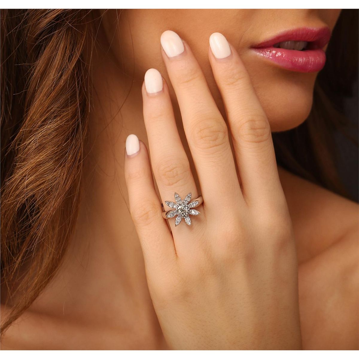 One electronically tested 14KT white gold Ladies combination cast & assembled engagement ring with a bright polish finish. Identified with markings of "585". Condition is new. Containing: One prong set round brilliant cut diamond, measuring 4.50 - 4.40 x 2.67mm (depth est.) approximate weight of 0.32ct. Clarity of SI-1, Cut is Very Good. Twenty-Four bead set round brilliant cut diamonds, measuring 2.00 - 1.20 x 0.96mm (depth est.) approximate total weight of 24 Stones = 0.36ct. Clarity of SI-1 to SI-2, Color of H - I, Cut is Good. Total Weight of Diamonds 0.68ct. Total Weight of Ring 5.50gm. GGL Appraised at $4,385.00.