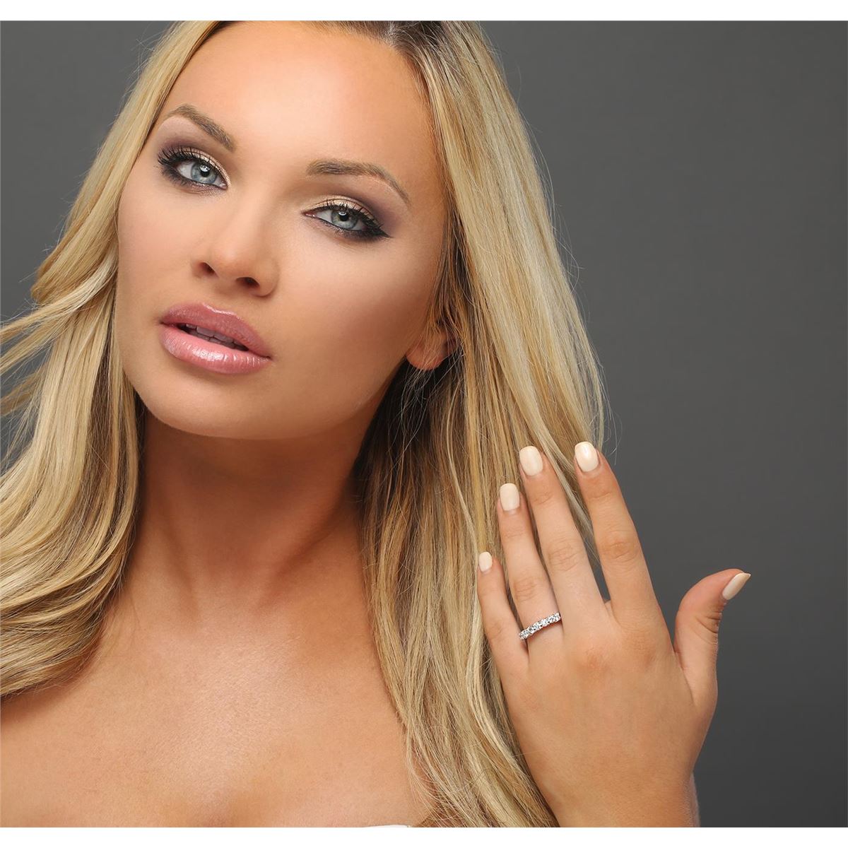 One electronically tested 14KT white gold ladies combination cast & assembled wedding ring with a bright polish finish. Identified with markings of "K14". Condition is new. Containing: Seven prong set round brilliant cut diamonds, measuring 3.00 - 3.00 x 1.80mm (depth est.) approximate total  weight of 7 Stones = 0.69ct. Clarity: SI-2 to I-1. Color: J, Cut is Good. All diamonds are graded in the mounting, unless otherwise stated. Total Weight of Diamonds 0.69ct. Total Weight of Ring 3.80 grams. GGL Appraised at $2,595.00.
