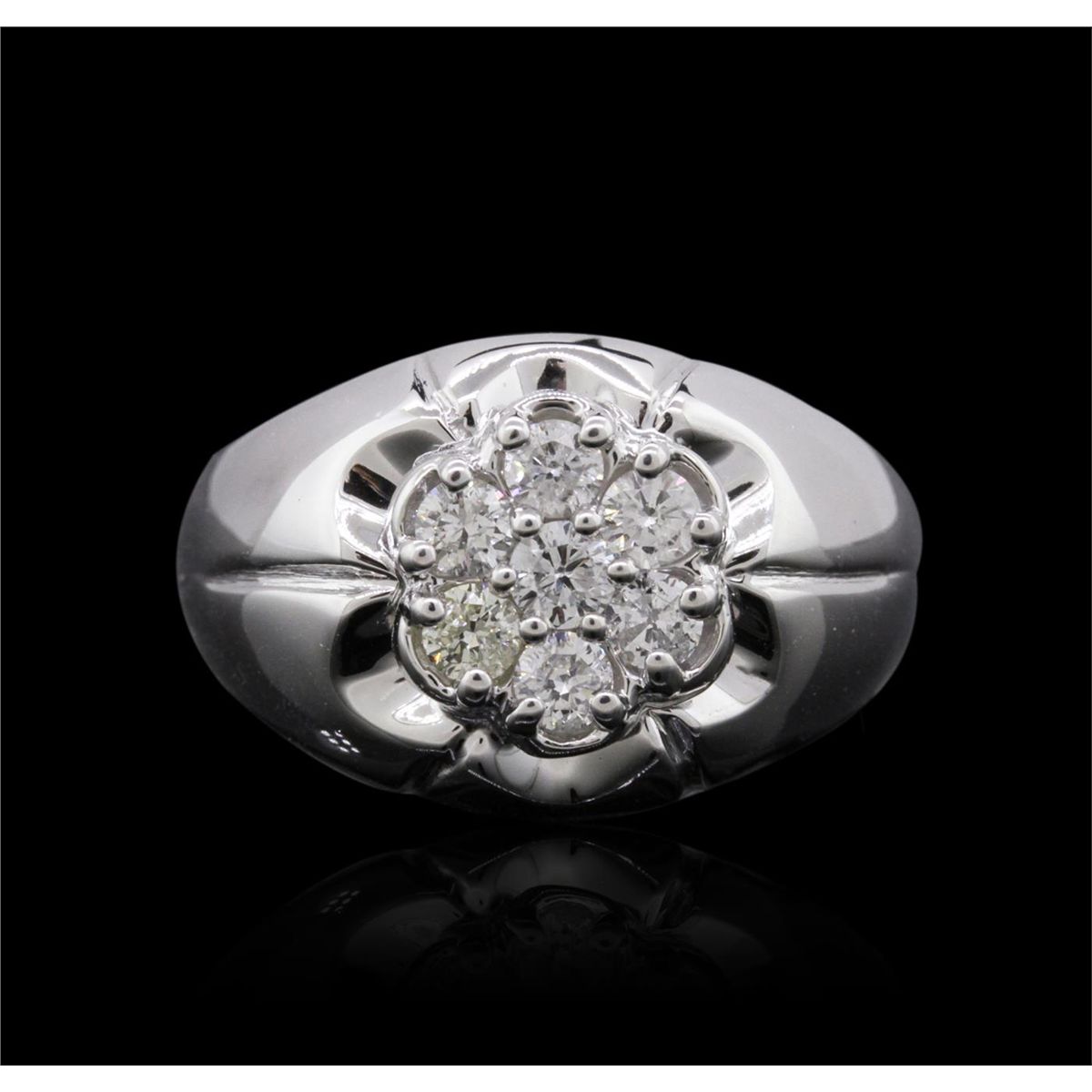One electronically tested 14KT white gold unisex combination cast & assembled diamond ring with a bright polish finish. Identified with markings of "14K". Condition is new. Containing: Seven prong set round brilliant cut diamonds, measuring 3.00 - 3.00 x 1.80mm (depth est.) approximate total weight of 7 Stones = 0.69ct. Clarity: SI-2 to I-1. Color: J - K, Cut is Good. All diamonds are graded in the mounting, unless otherwise stated. Total Weight of Diamonds 0.69ct. Total Weight of Ring 7.70 grams. GGL Appraised at $3,195.00.