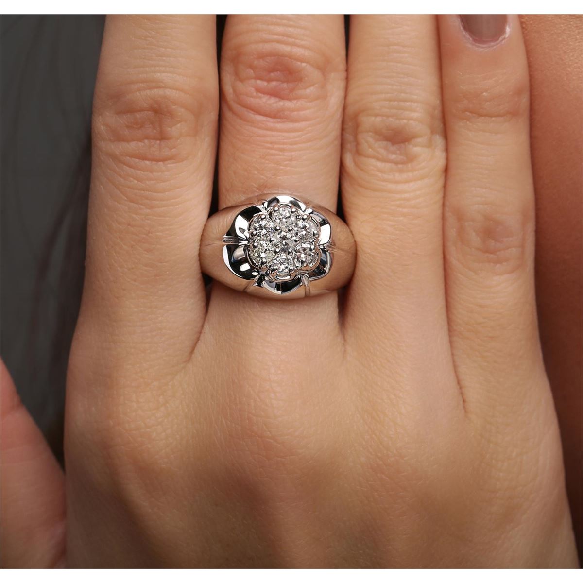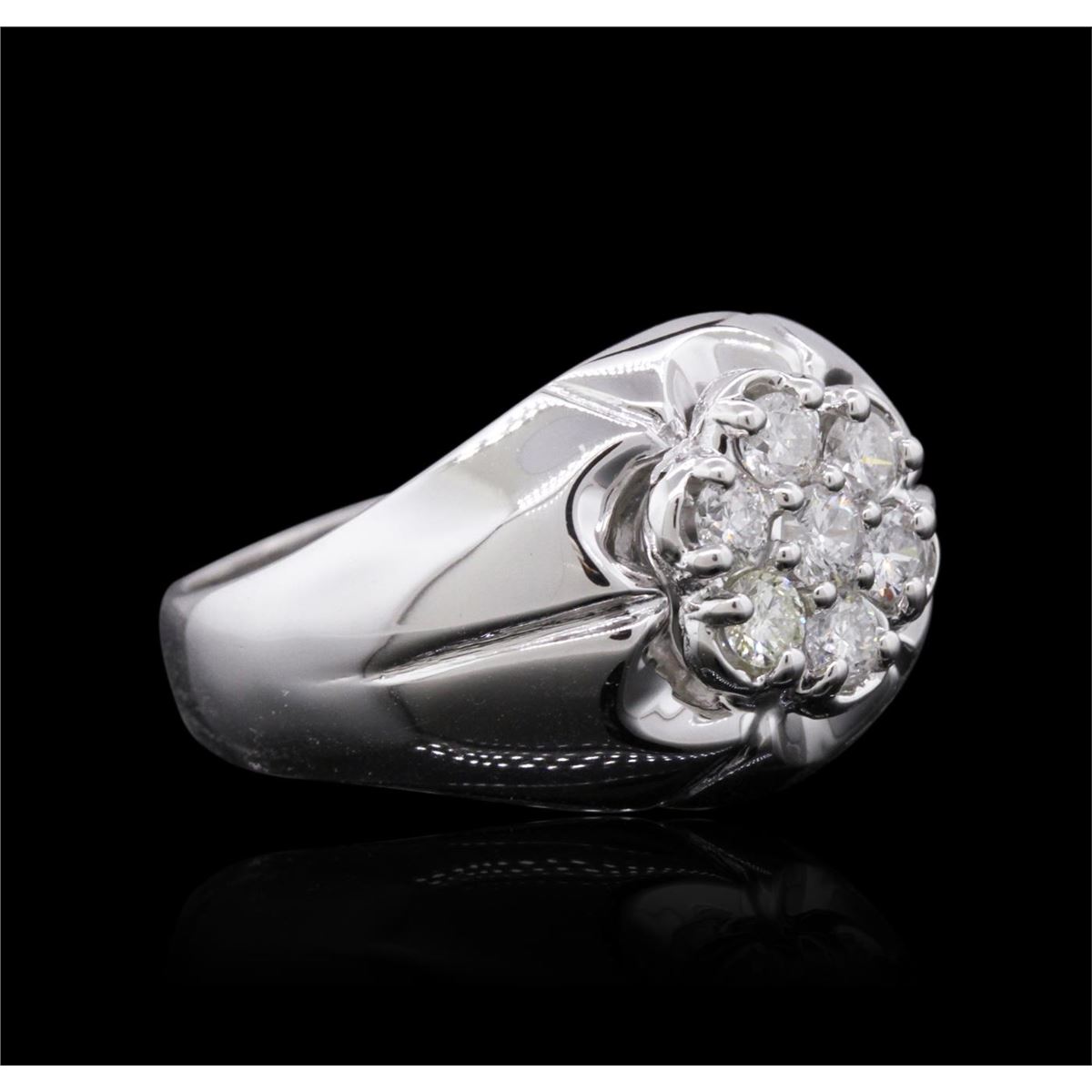 One electronically tested 14KT white gold unisex combination cast & assembled diamond ring with a bright polish finish. Identified with markings of "14K". Condition is new. Containing: Seven prong set round brilliant cut diamonds, measuring 3.00 - 3.00 x 1.80mm (depth est.) approximate total weight of 7 Stones = 0.69ct. Clarity: SI-2 to I-1. Color: J - K, Cut is Good. All diamonds are graded in the mounting, unless otherwise stated. Total Weight of Diamonds 0.69ct. Total Weight of Ring 7.70 grams. GGL Appraised at $3,195.00.