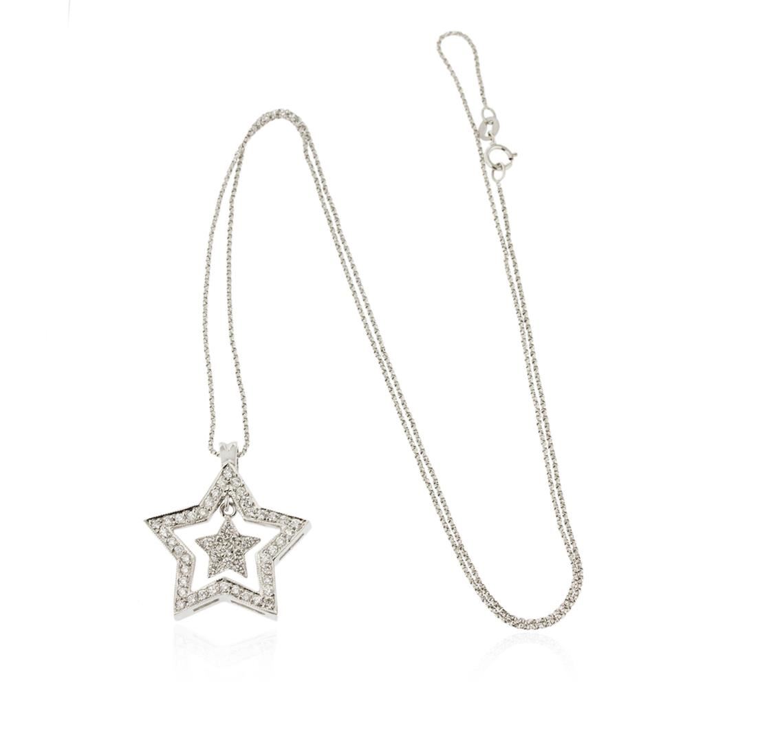 One star pendant with chain featuring: 14KT white gold weighing 6.80 grams containing diamonds with a total weight of 0.70ct.