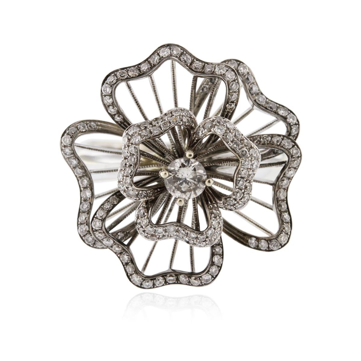 One ring featuring: 14KT white gold weighing 5.80 grams containing pave/prong set round diamonds with a total weight of 0.71ct.