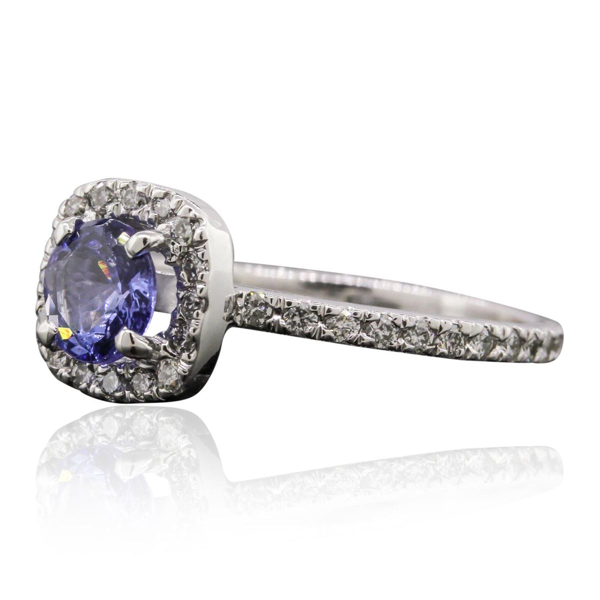 One ring featuring: 14KT White Gold with a total weight of 3.04 grams, Tanzanite with a total weight of 0.72ct, and Diamonds with a total weight of 0.60ctw.