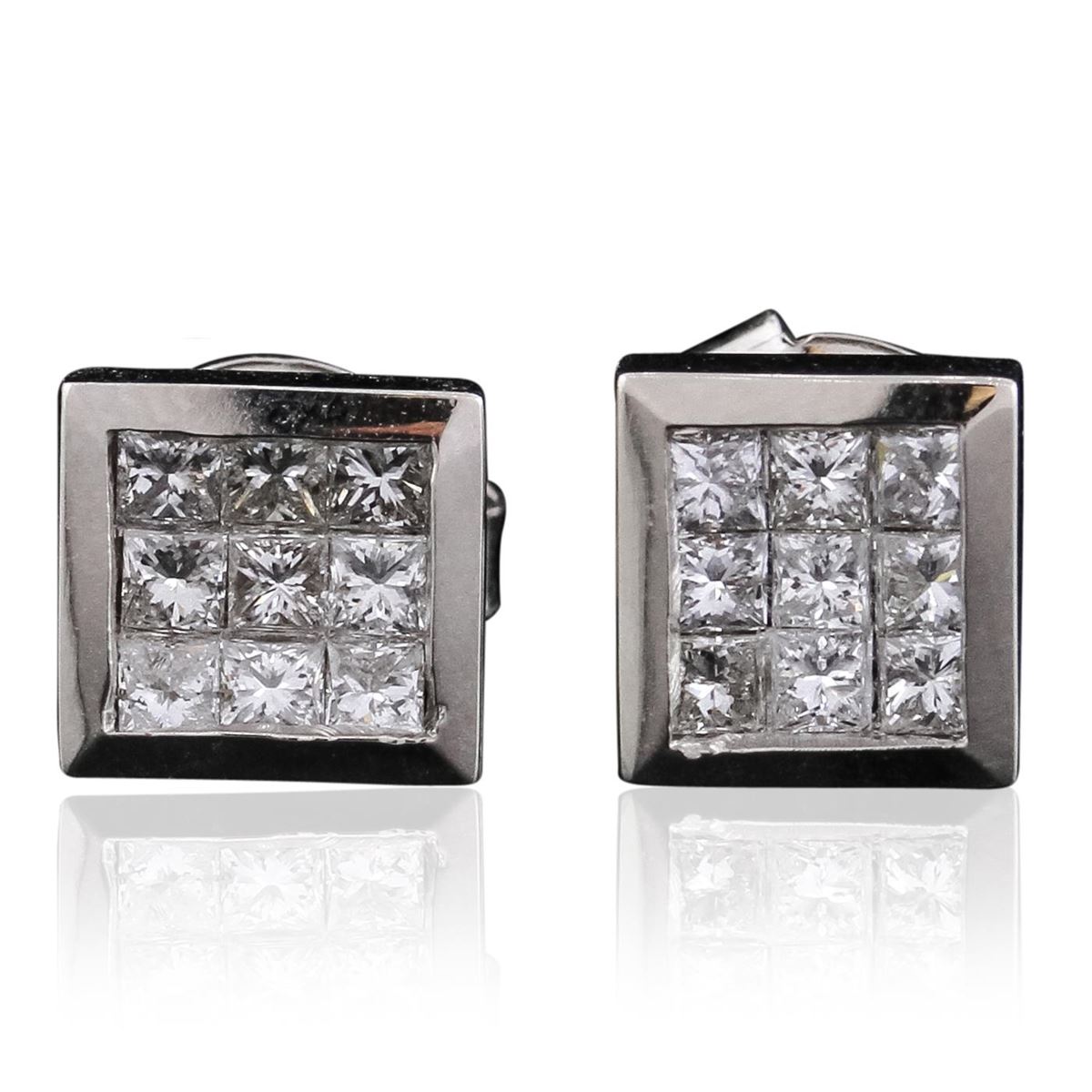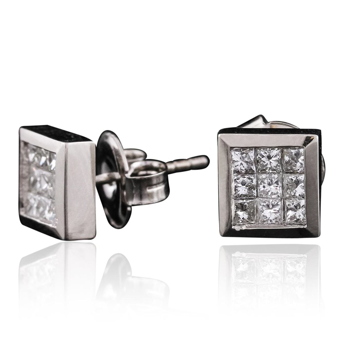 One pair of stud earrings featuring: 14KT White Gold with a total weight of 2.90 grams, and Diamonds with a total weight of 0.73ctw.