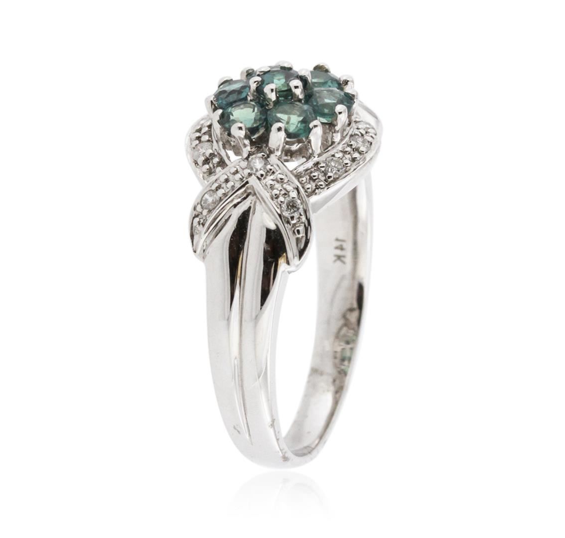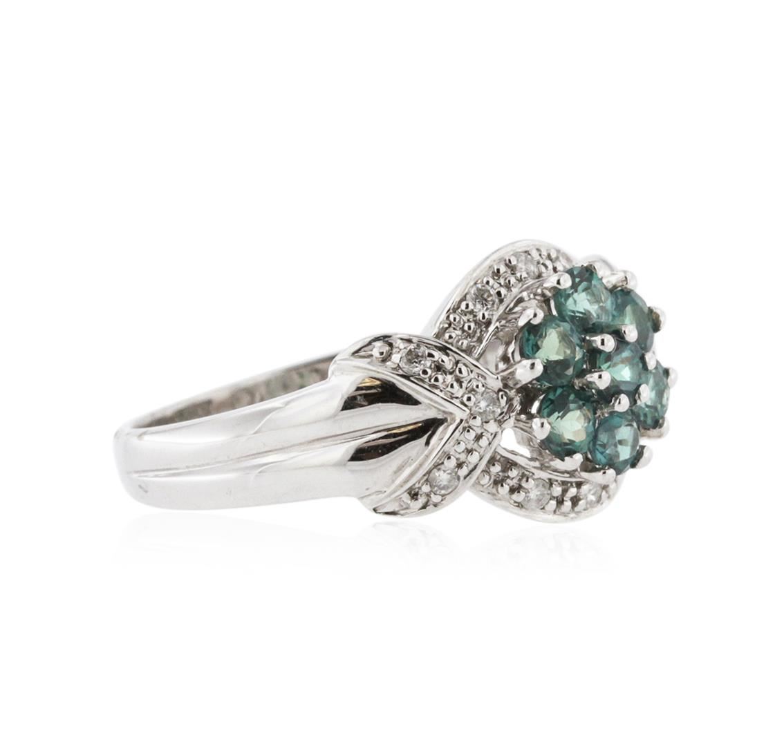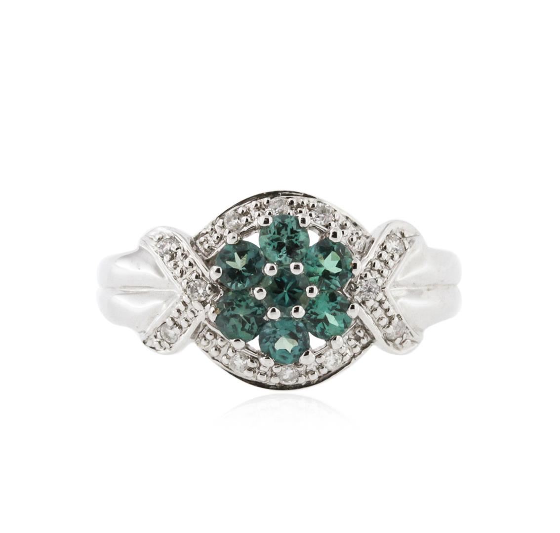 One ring featuring: 14KT white gold weighing 4.14 grams containing 7 alexandrites with a total weight of 0.74ct and 12 round diamonds with a total weight of 0.11ct.