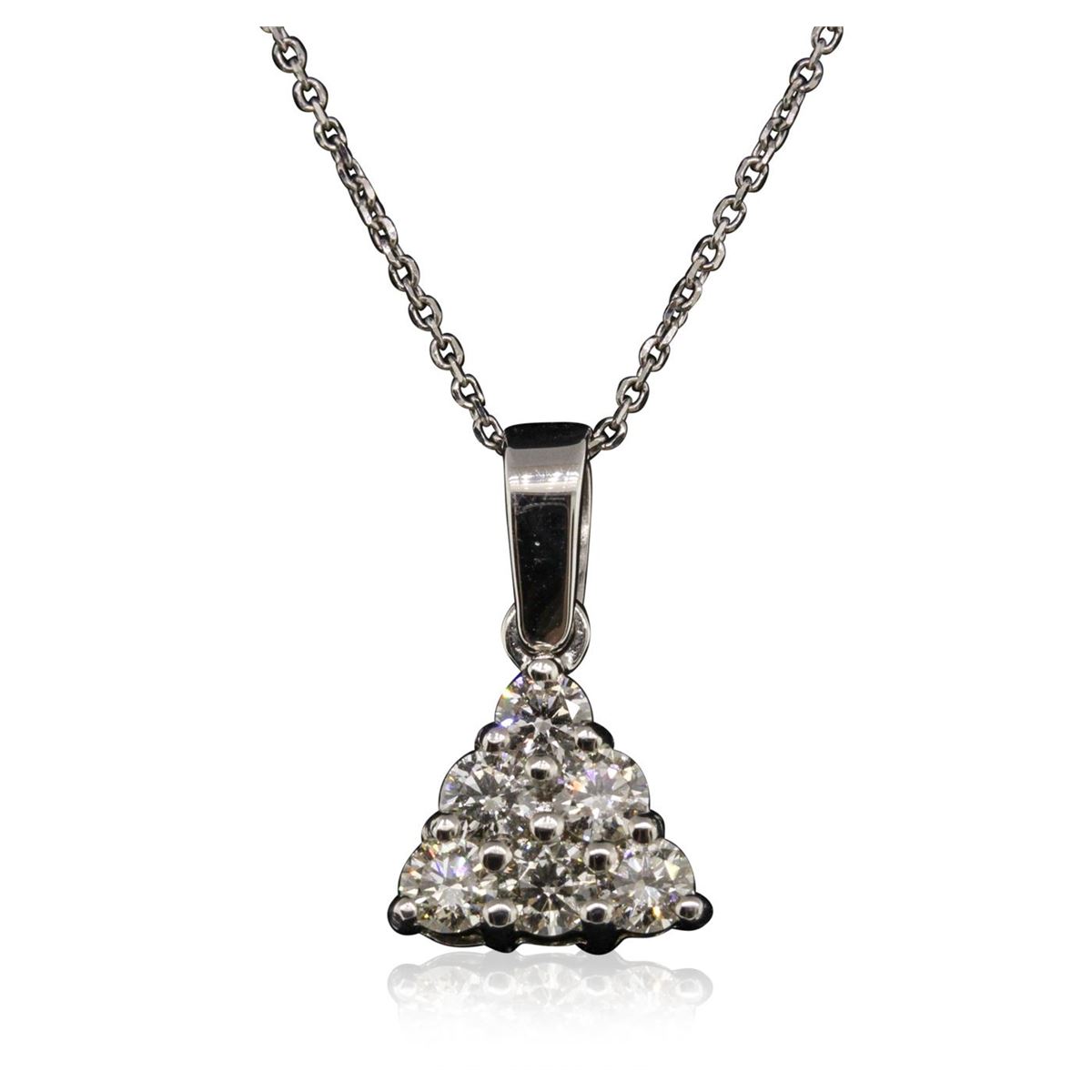 One pendant with chain featuring: 14KT White Gold with a total weight of 1.90 grams, and Diamonds.