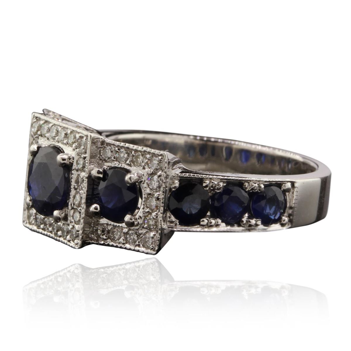 One ring featuring: 8.00 grams of 14KT white gold, (1) 0.75ct sapphire and 0.50cts of diamonds.