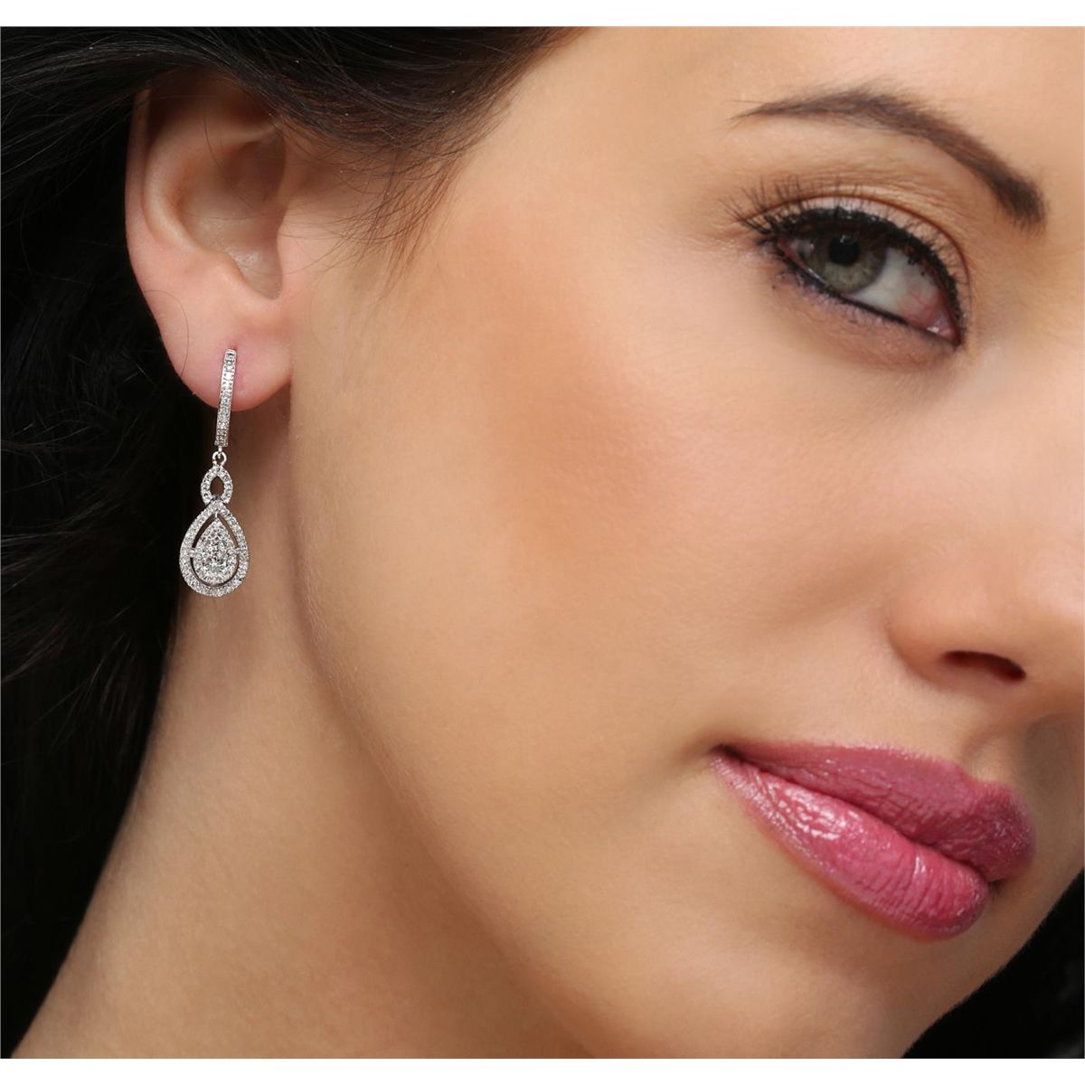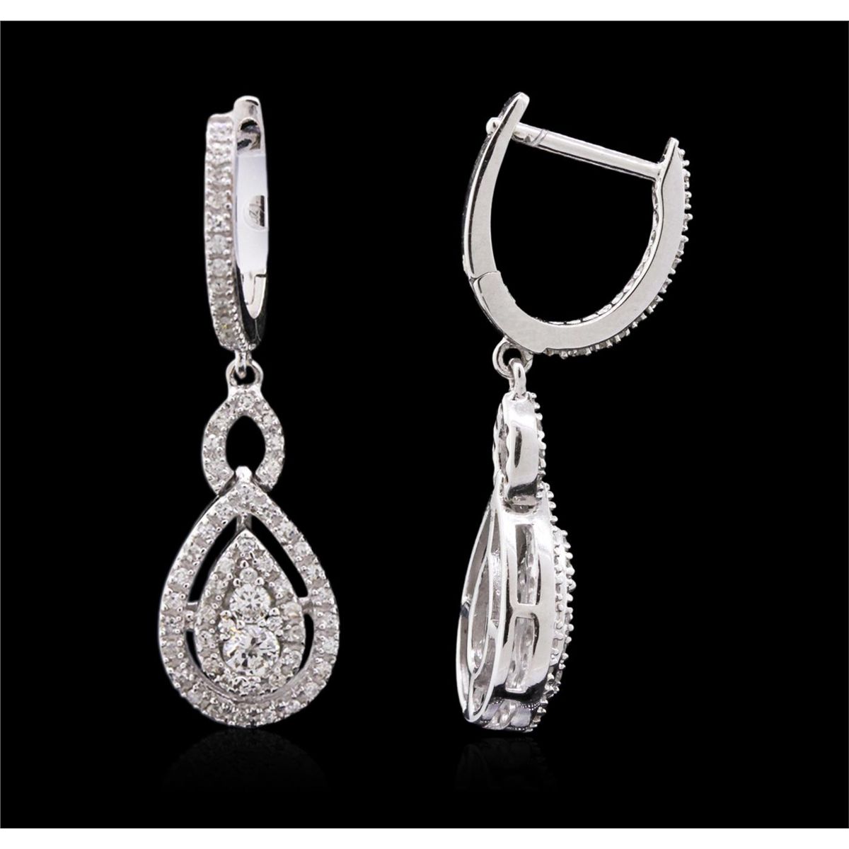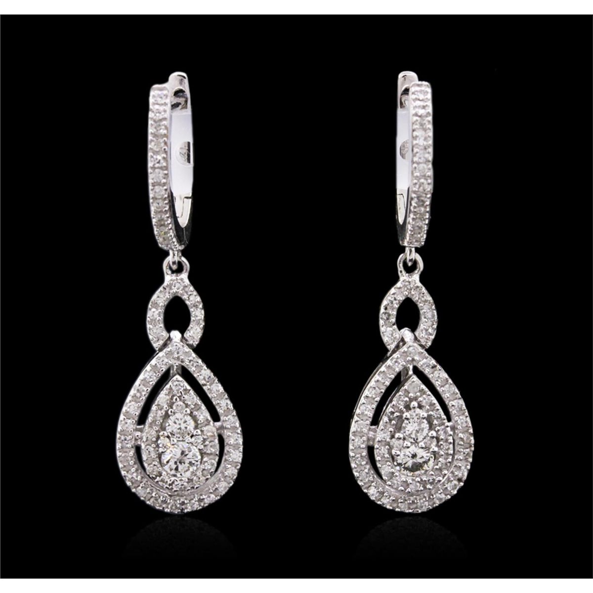 One pair of earrings featuring: 14KT white gold weighing 5.20 grams containing diamonds with a total weight of 0.75cts.