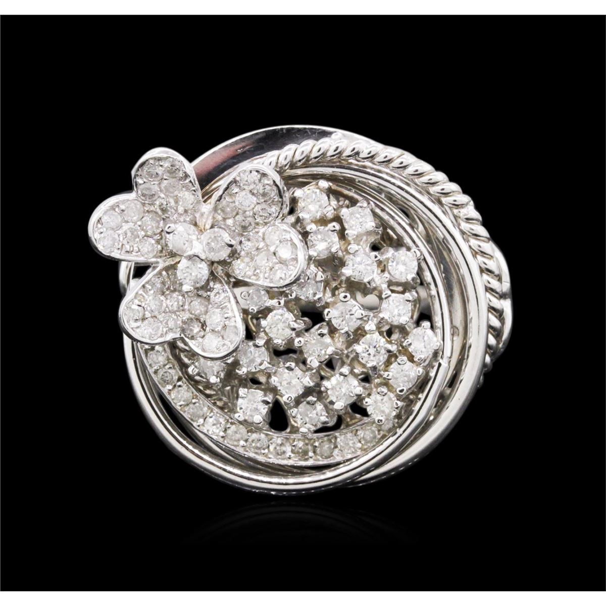 One electronically tested 14KT white gold ladies combination cast & assembled diamond ring with a bright polish finish. Identified with markings of "585". Condition is new. Containing: Seventy-Six prong set round brilliant cut diamonds, measuring 1.50 - 1.30 x 0.84mm (depth est.) approximate total  weight of 76 Stones = 0.76ct. Clarity: SI-2 to I-2. Color: H - I, Cut is Good. All diamonds are graded in the mounting, unless otherwise stated. Total Weight of Diamonds 0.76ct. Total Weight of Ring 9.90 grams. GGL Appraised at $4,030.00.