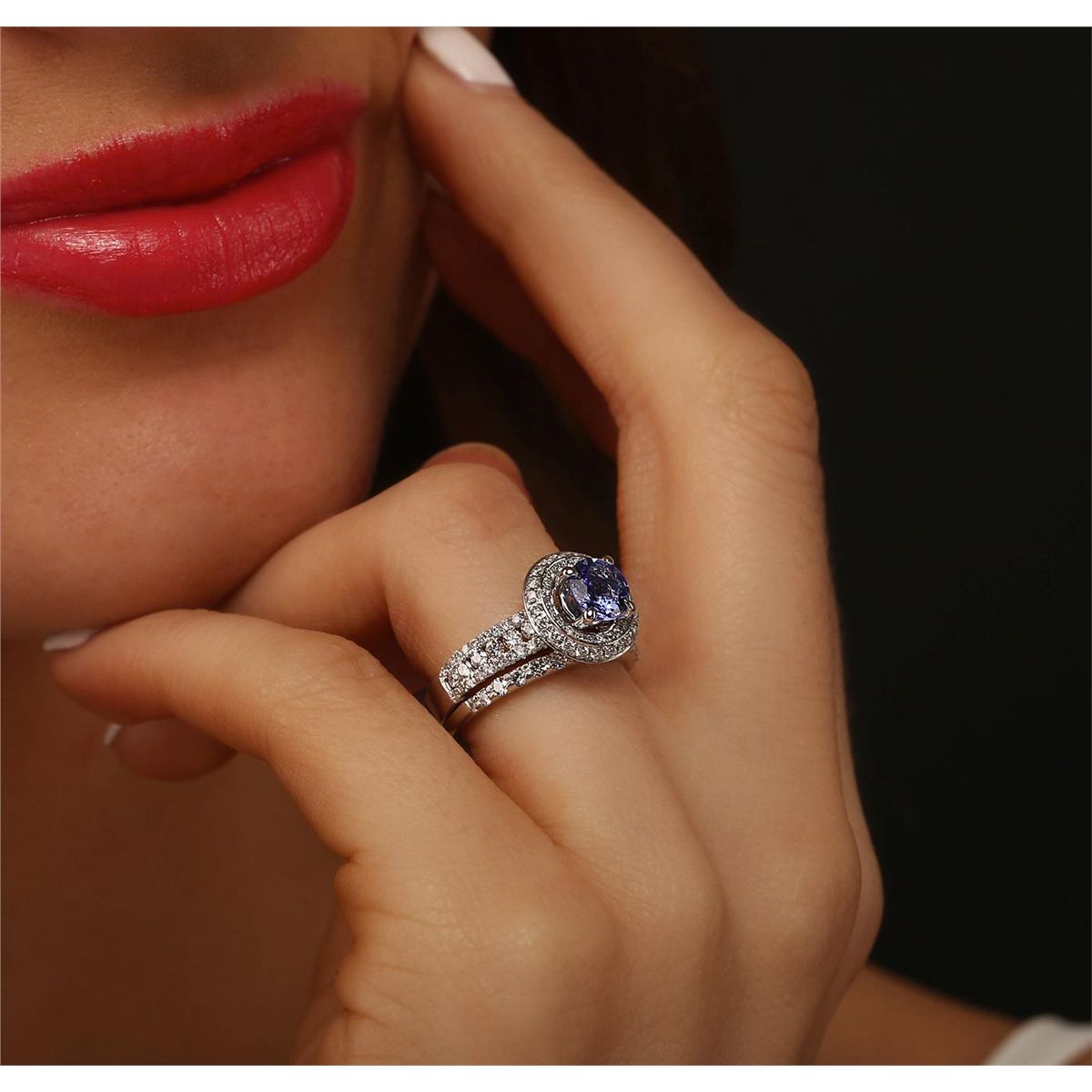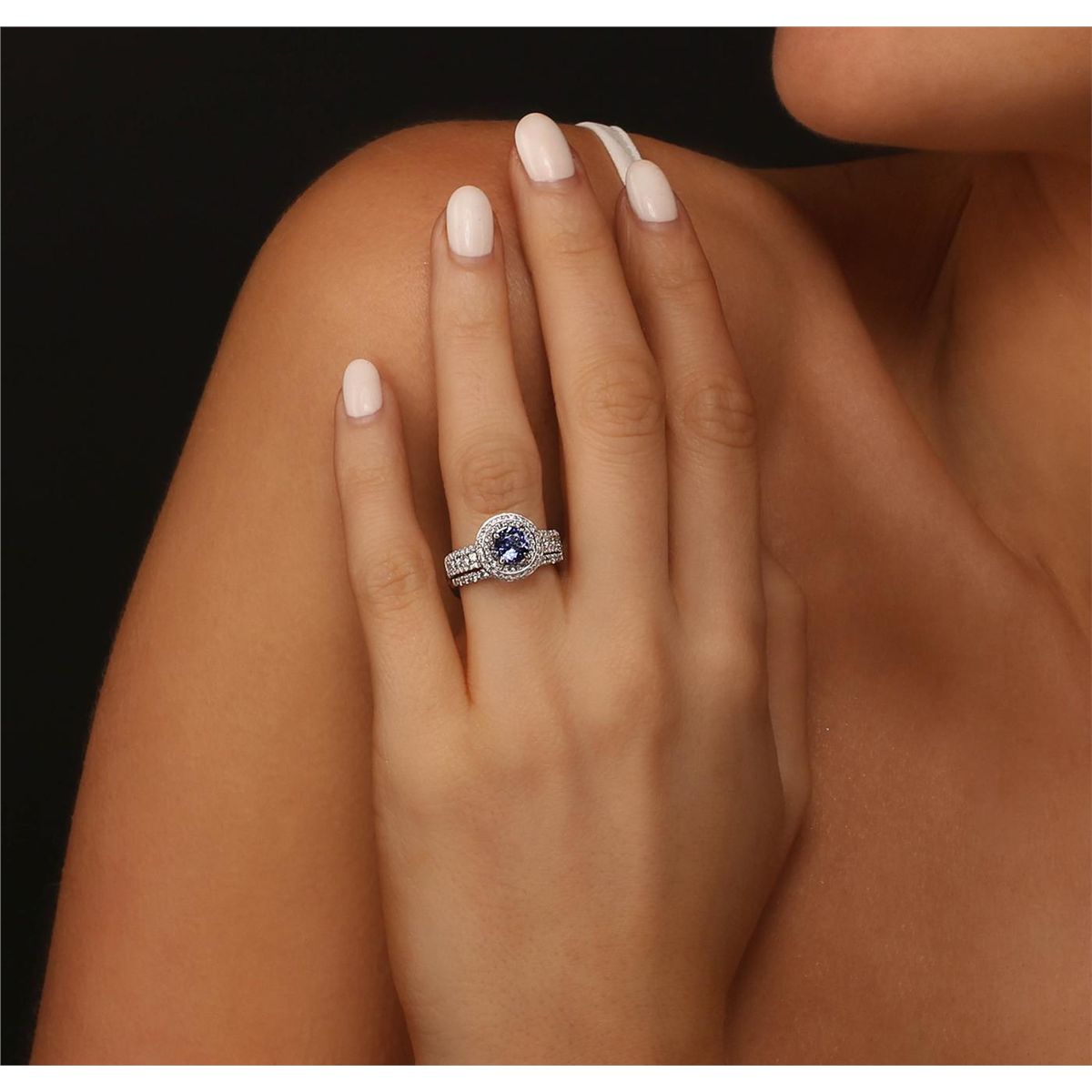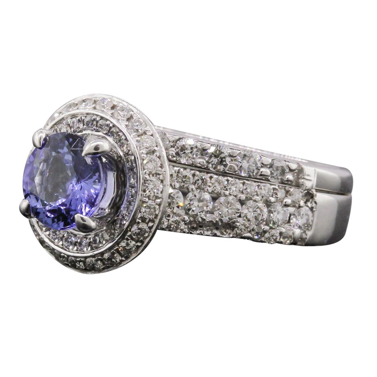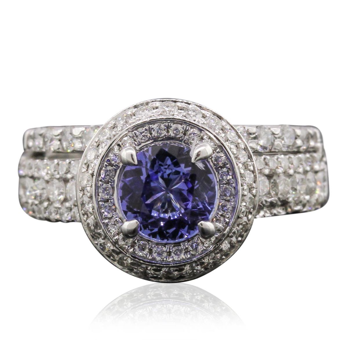 One electronically tested 14KT white gold Ladies combination cast & assembled engagement ring with a bright polish finish. Condition is new. Containing: One prong set round modified mixed cut natural tanzanite, measuring 6.10 - 6.10 x 3.13 mm, approximate weight of 0.78ct., clarity is eye clean, type I, medium light, very slightly grayish, violet color, (GIA V 4/3), cut is very good. Colored gemstones are presumed to have been subjected to commonly used color/clarity enhancement processes. One Hundred Seventeen prong set round brilliant cut diamonds, measuring 1.50 - 1.10 x 0.78mm (depth est.) approximate. Total Weight of 117 Stones = 0.80ct. Clarity: SI-1 to I-1. Color: H - I, Cut is Good. Total Weight of Colored Stones 0.78ct. Total Weight of Diamonds 0.80ct. Total Weight of Ring 7.60 grams. GGL Appraised at $6,065.00.