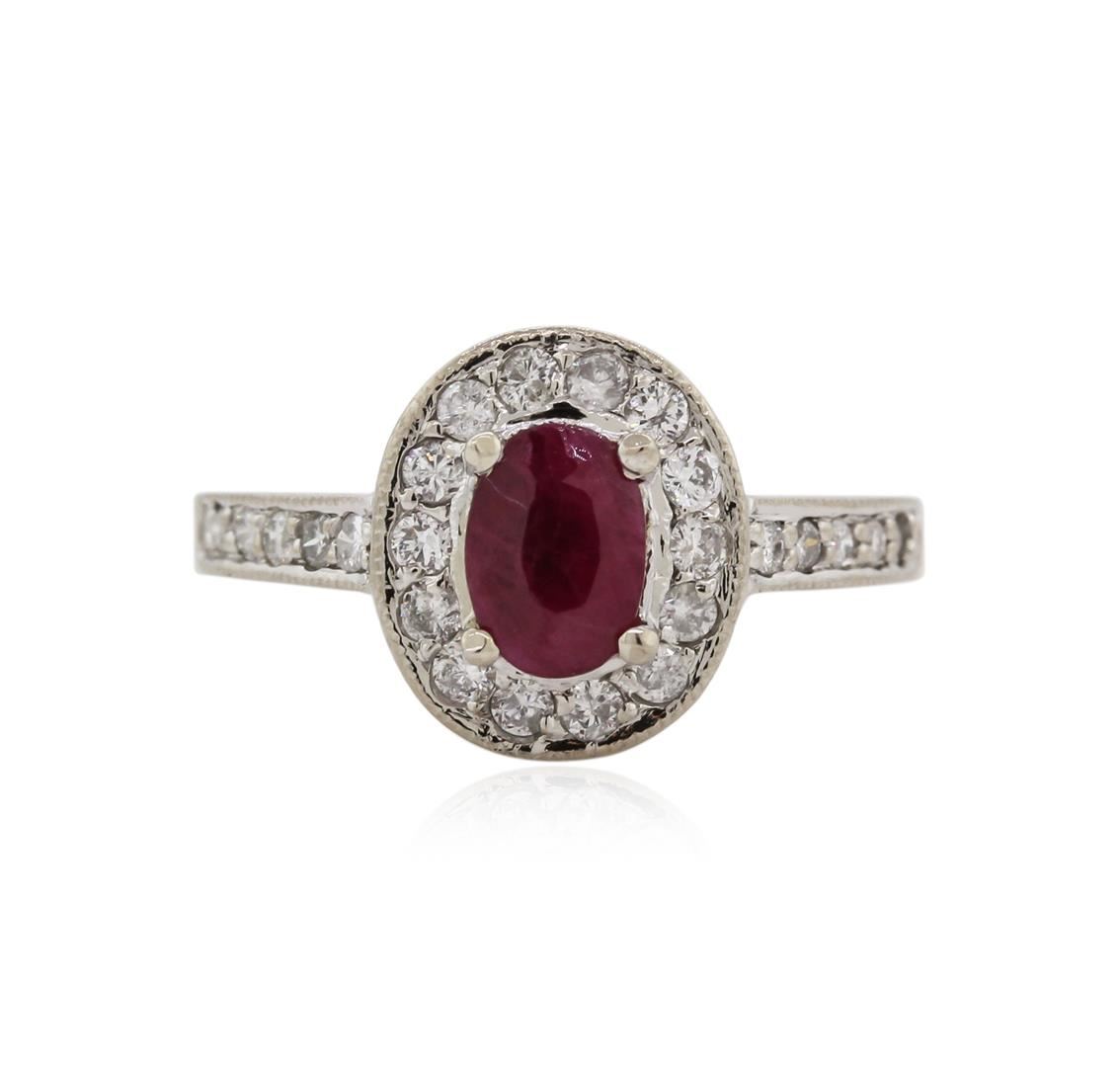 One ring featuring: 14KT white gold weighing 4.93 grams containing one ruby center stone with a total weight of 0.80ct and 24 diamonds with a total weight of 0.45ct.
