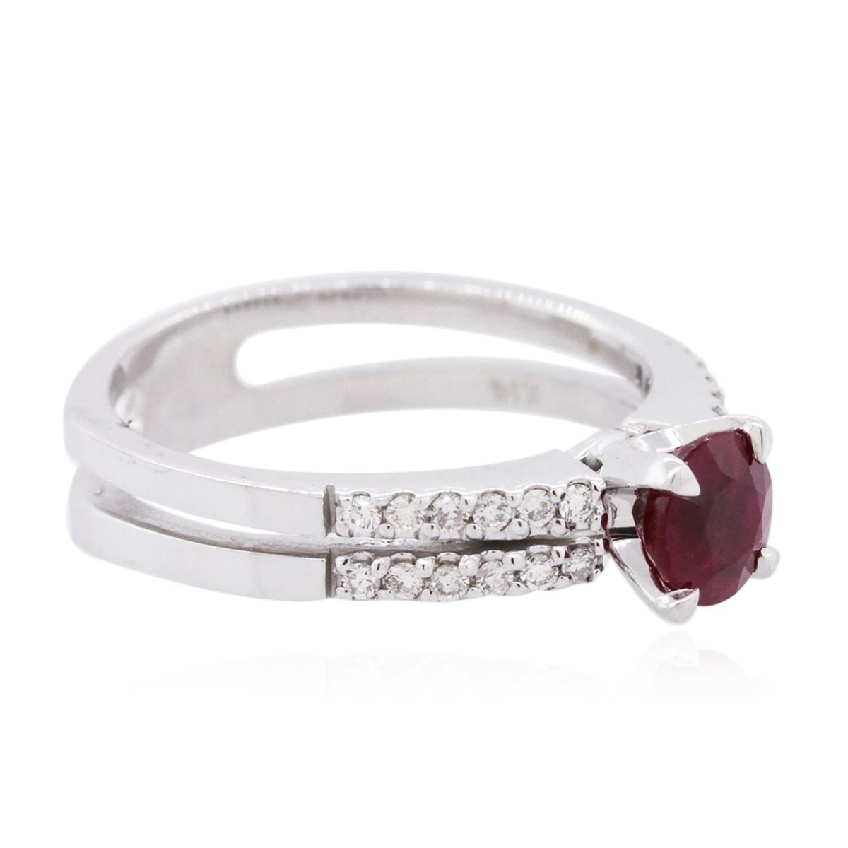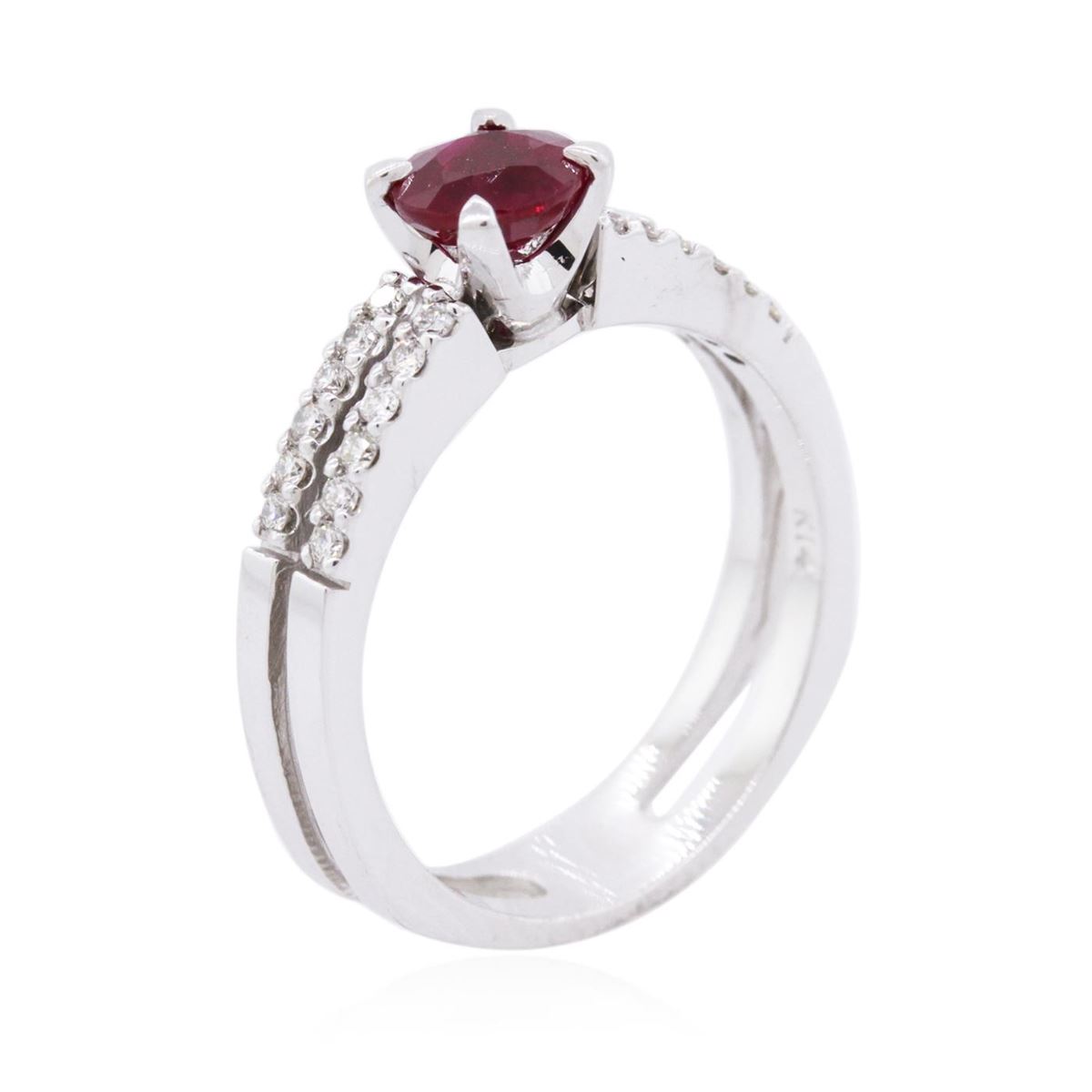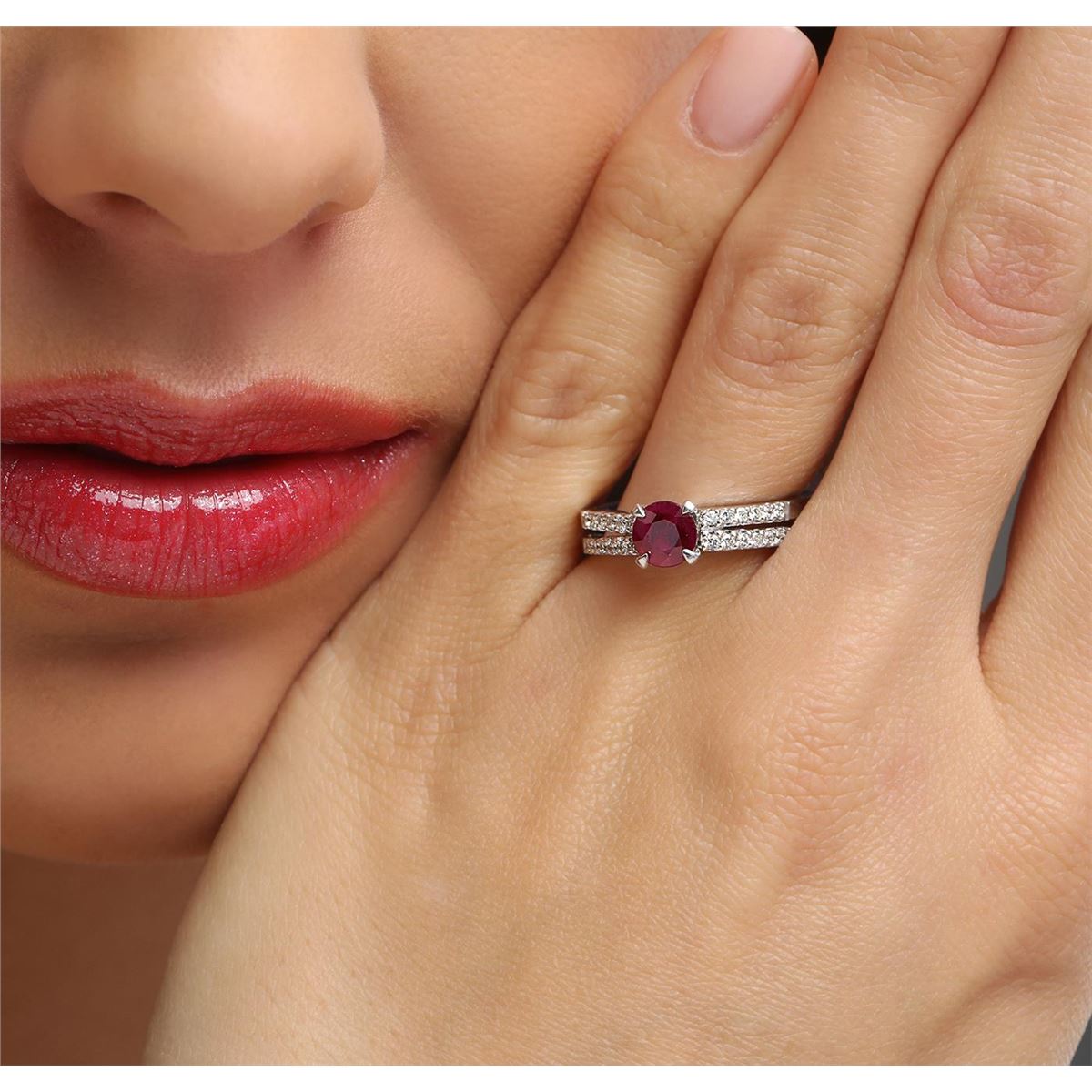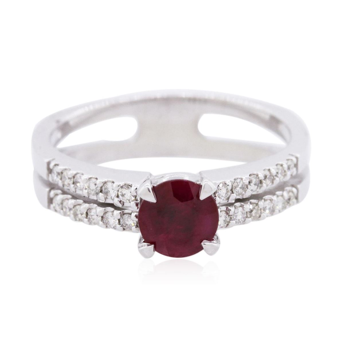 One ring featuring: 14KT white gold weighing 4.20 grams containing one ruby center stone with a total weight of 0.80ct and round diamonds with a total weight of 0.20cts.