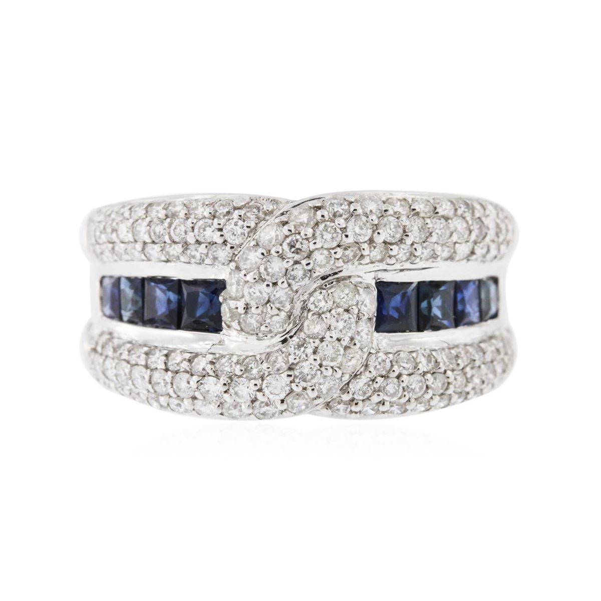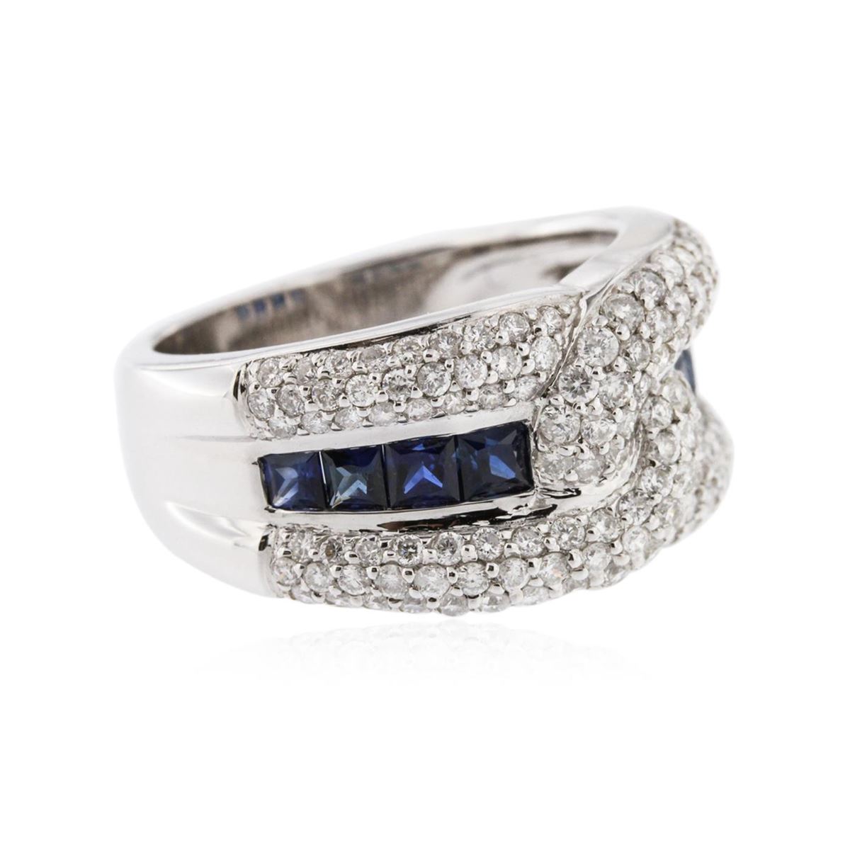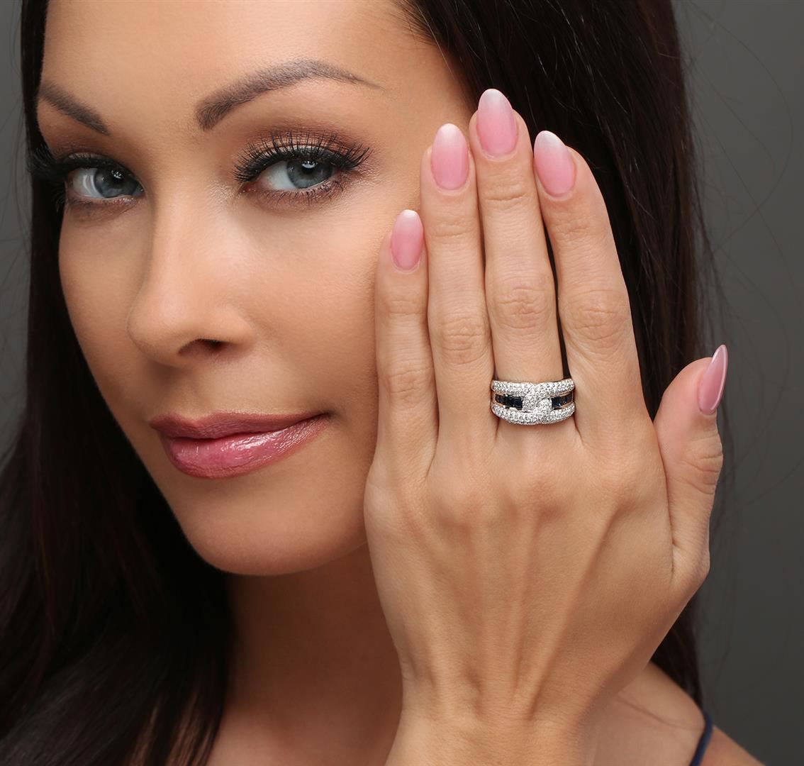 One ring featuring: 14KT white gold weighing 7.50 grams containing blue sapphires with a total weight of 0.82ct and pave set round diamonds with a total weight of 1.30ct.