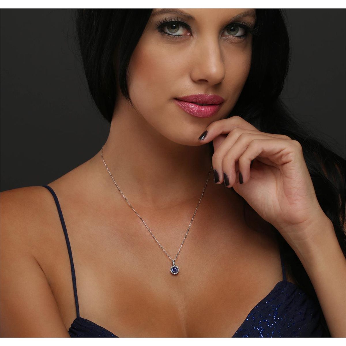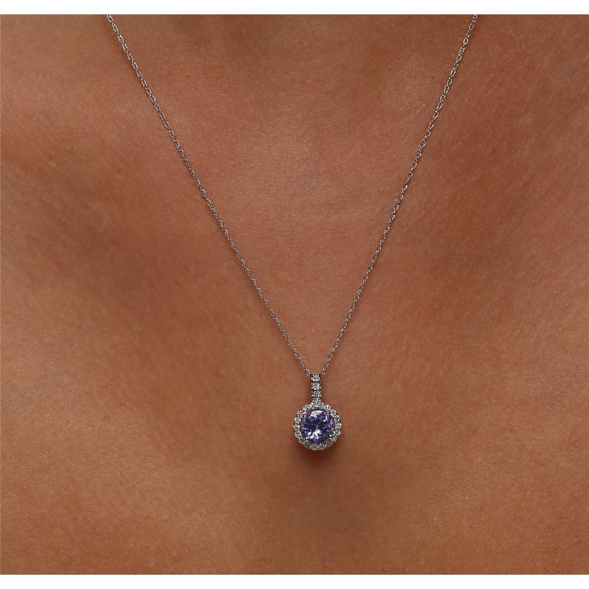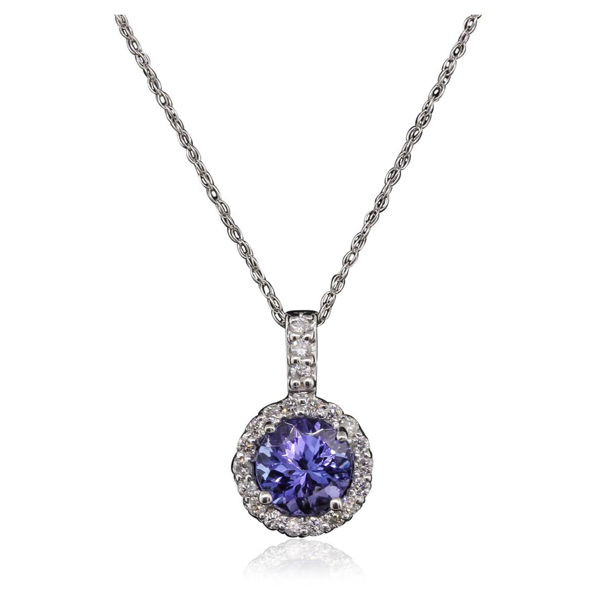 One pendant featuring: 14KT White Gold with a total weight of 1.4 grams, Tanzanite with a total weight of 0.84ct, and Diamonds with a total weight of 0.15ctw.