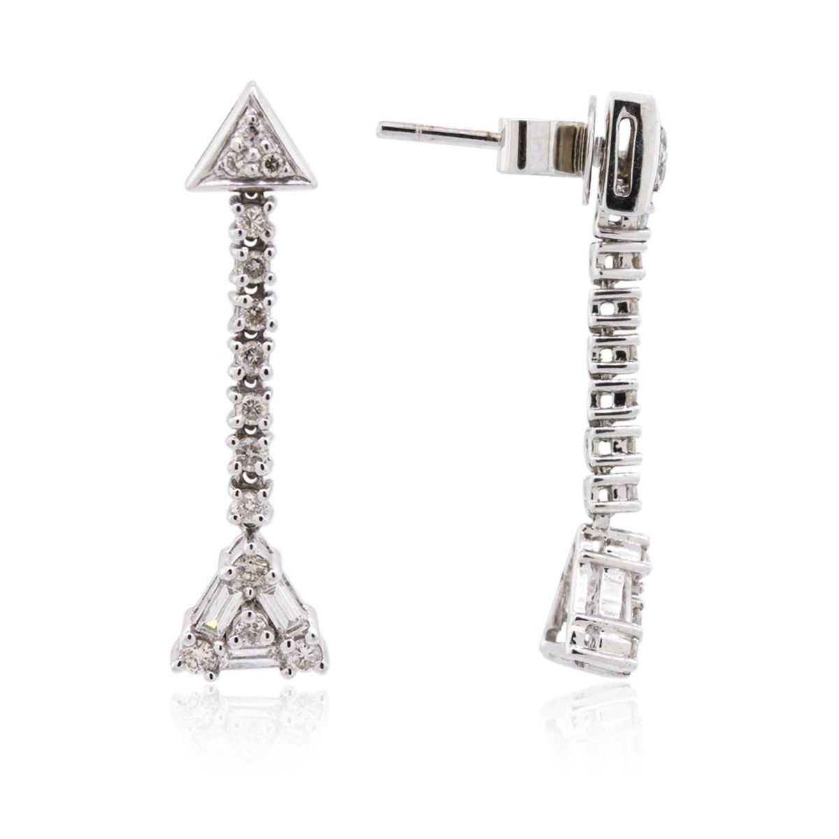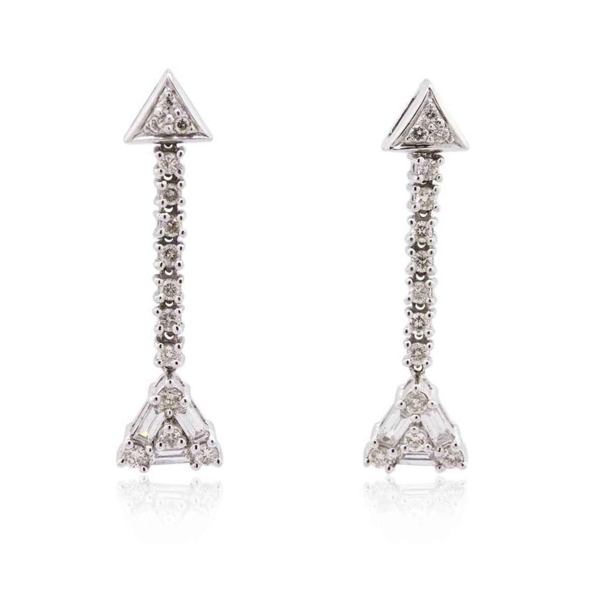One pair of earrings featuring: 14KT white gold weighing 4.30 grams containing round cut/baguette cut diamonds with a total weight of 0.84cts.
