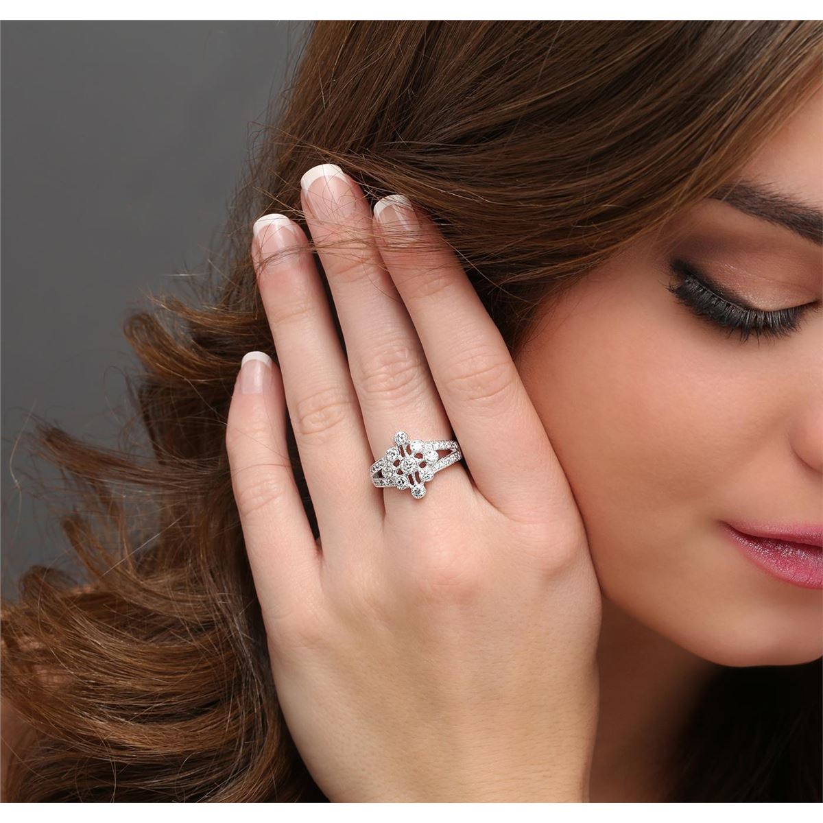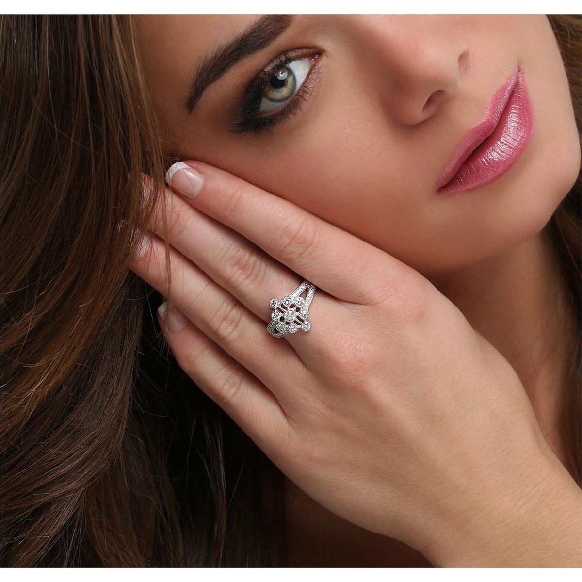 One electronically tested 14KT white gold ladies cast diamond ring with a split shoulder shank with a bright polish finish. Identified with markings of "14K". Condition is new. Containing: Nine gypsy set round brilliant cut diamonds, measuring 3.00 - 2.50 x 1.65mm (depth est.) approximate total weight of 9 Stones = 0.69ct. Clarity: SI-1. Color: I - J, Cut is Good. Thirteen prong set round brilliant cut diamonds, measuring 1.50 - 1.50 x 0.90mm (depth est.) approximate total weight of 13 Stones = 0.16ct. Clarity: SI-1 to SI-2. Color: I - J, Cut is Good. All diamonds are graded in the mounting, unless otherwise stated. Total Weight of Diamonds 0.85ct. Total Weight of Ring 5.60 grams. GGL Appraised at $3,765.00.