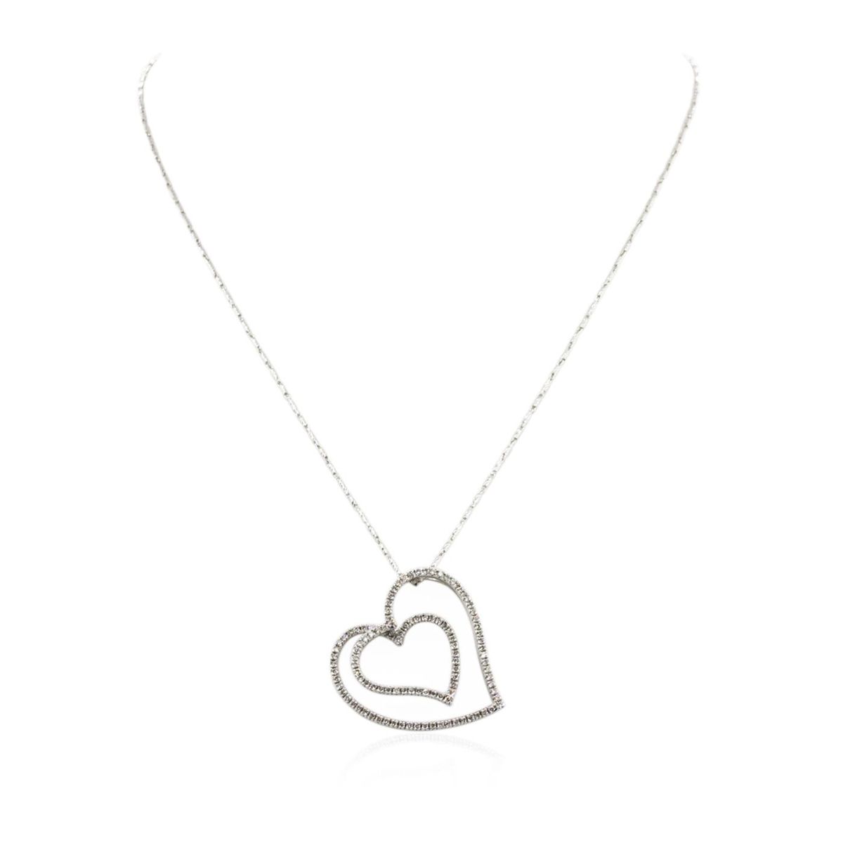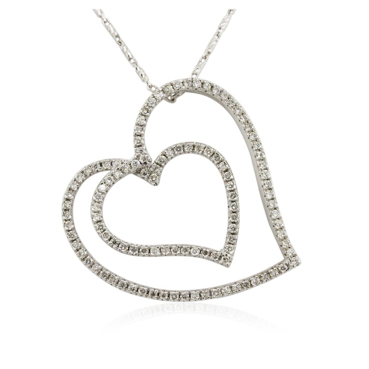One electronically tested 14KT white gold ladies combination cast & assembled pendant & chain 18.0" long, light fancy link with a lobster claw clasp with a bright polish finish. Identified with markings of "585". Condition is new. Containing: One Hundred Eight prong set round brilliant cut diamonds, measuring 1.30 - 1.30 x 0.78mm (depth est.) approximate total weight of 108 Stones = 0.86ct. Clarity: SI-2 to I-1. Color: J - K, Cut is Good. All diamonds are graded in the mounting, unless otherwise stated. Total Weight of Diamonds 0.86ct. Total Weight of Pendant & Chain 11.90 grams. GGL Appraised at $5,835.00.