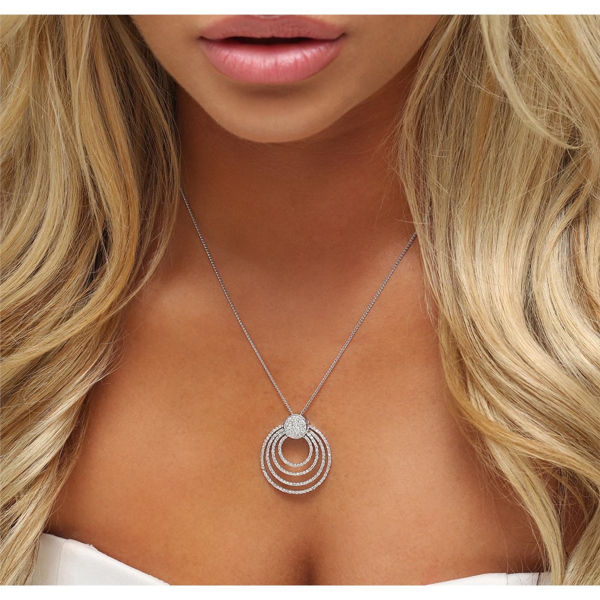 One electronically tested 14KT white gold ladies cast & assembled diamond pendant with chain. The pendant features four diamond set draping ribbons, completed by a diamond set bail. The pendant is supported by an eighteen inch length 14KT white gold designer style chain, terminating in a lobster claw clasp. Bright polish finish. Identified with markings of "K14". Condition is new, good workmanship. Containing: One Hundred Eighty-Nine prong set round brilliant cut diamonds, measuring 1.10 - 1.00 x 0.63mm (depth est.) approximate total weight of 189 Stones = 0.90ct. Graded in the setting. Clarity: I-1 to I-2. Color: G - J. Total Weight of Diamonds 0.90ct. Total Weight of Pendant With Chain 7.44 grams. AIG Appraised at $4,440.00.