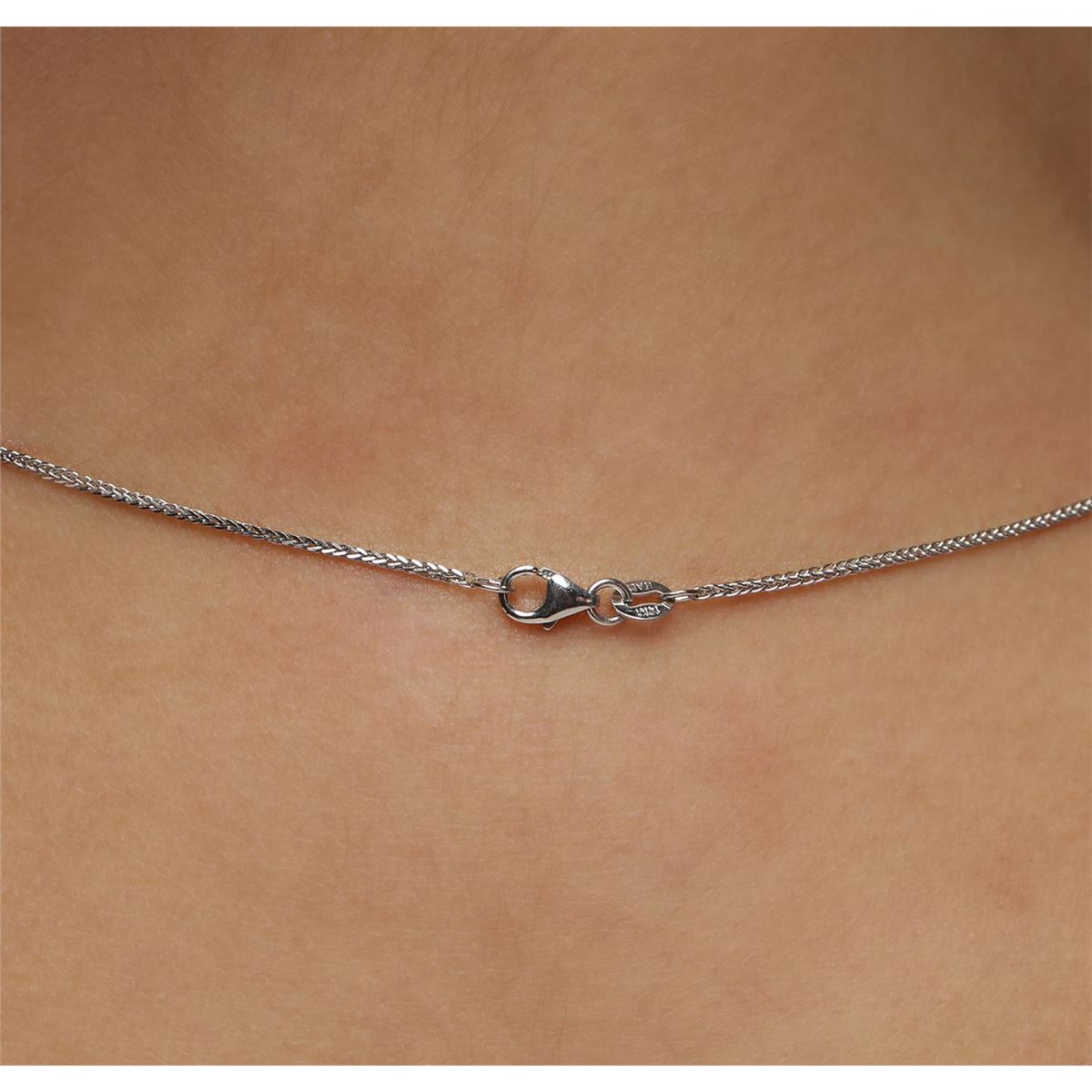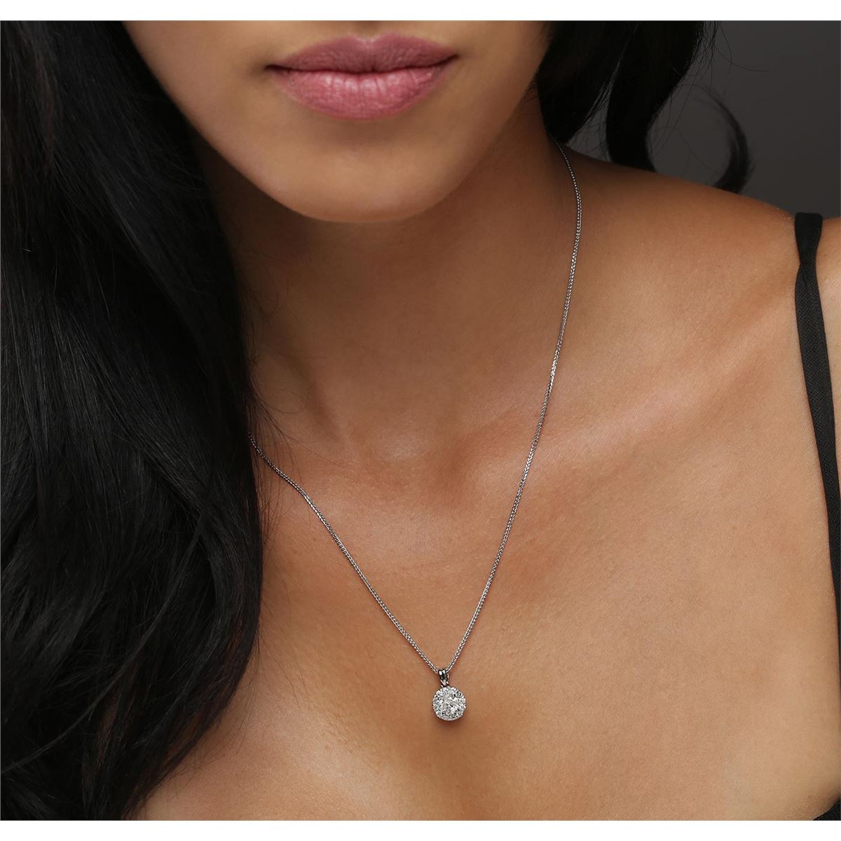 One electronically tested 14KT white gold ladies combination cast & assembled diamond pendant & chain 18.0" long, medium fancy cable with a lobster claw clasp with a bright polish finish. Identified with markings of "14K". Condition is new. Containing: One prong set round brilliant cut diamond, measuring 5.49 - 5.44 x 3.62mm (depth est.) approximate weight of 0.66ct. Clarity: I-3. Color: I, Cut is Good. Twelve prong set round brilliant cut diamonds, measuring 1.80 - 1.80 x 1.08mm (depth est.) approximate total weight of 12 Stones = 0.26ct. Clarity: SI-2 to I-2. Color: H - J, Cut is Good. All diamonds are graded in the mounting, unless otherwise stated. Total Weight of Diamonds 0.92ct. Total Weight of Pendant & Chain 2.70 grams. GGL Appraised at $3,110.00.