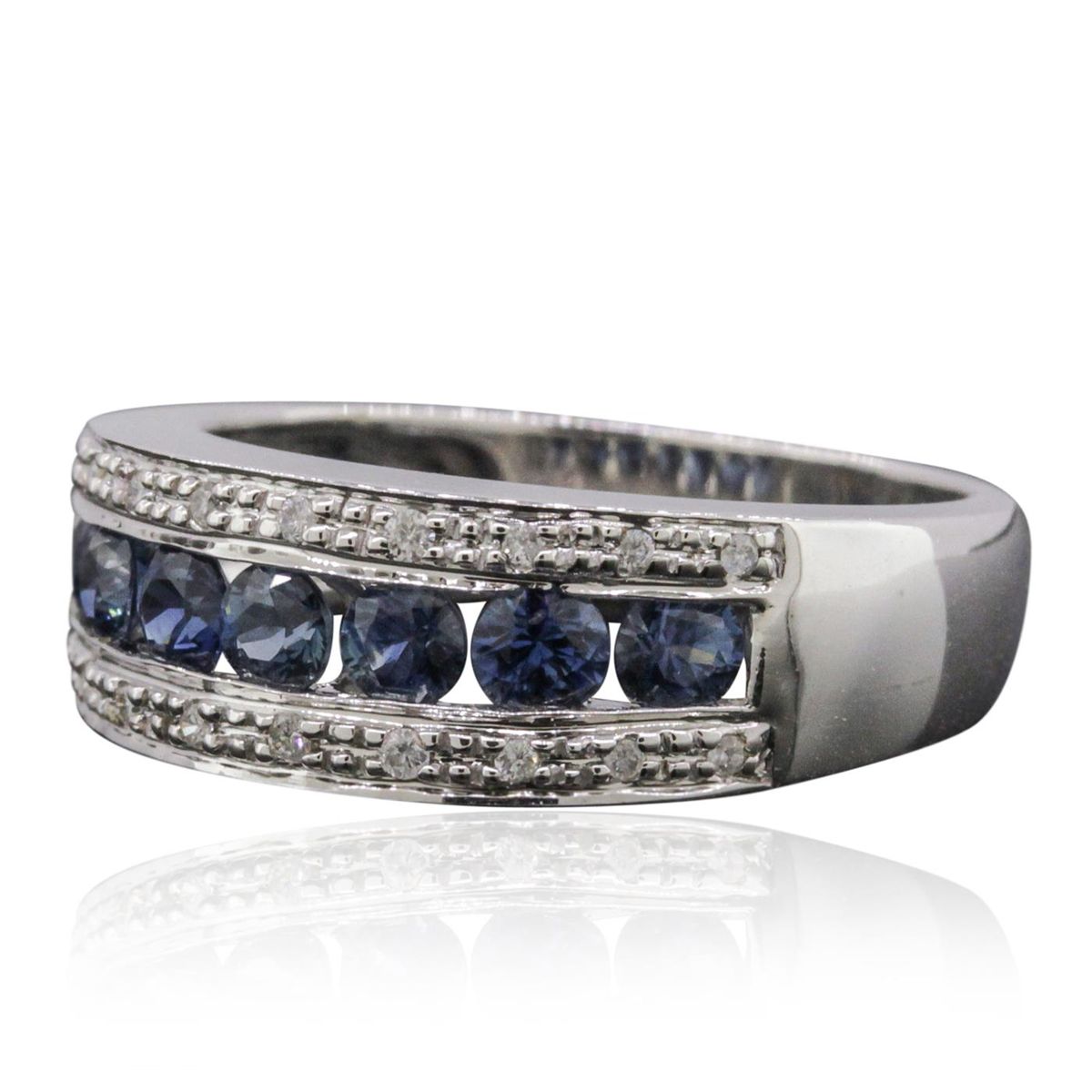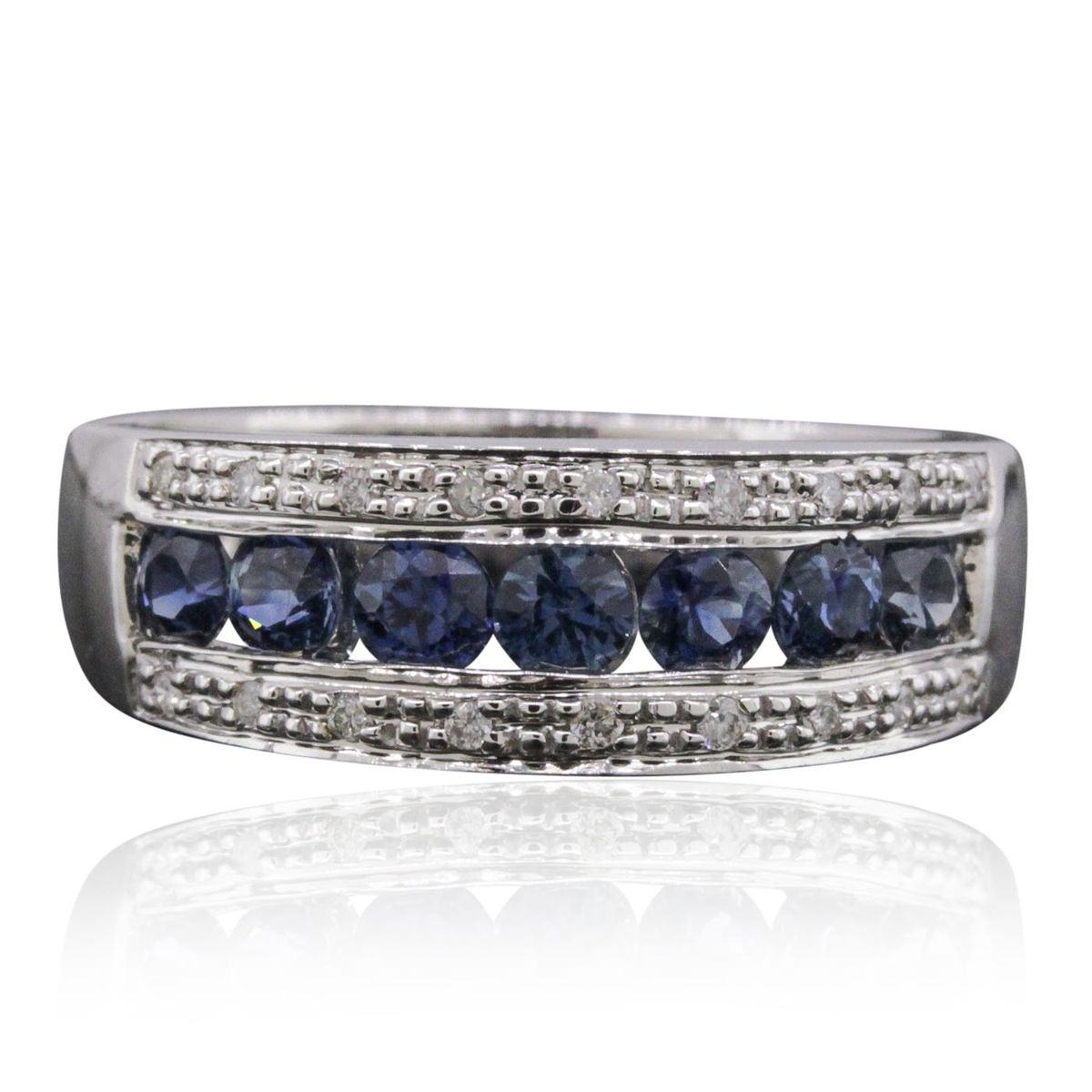 One ring featuring: 14KT white gold weighing 3.77 grams containing seven blue sapphires with a total weight of 0.92cts and 18 round cut diamonds with a total weight of 0.07cts.