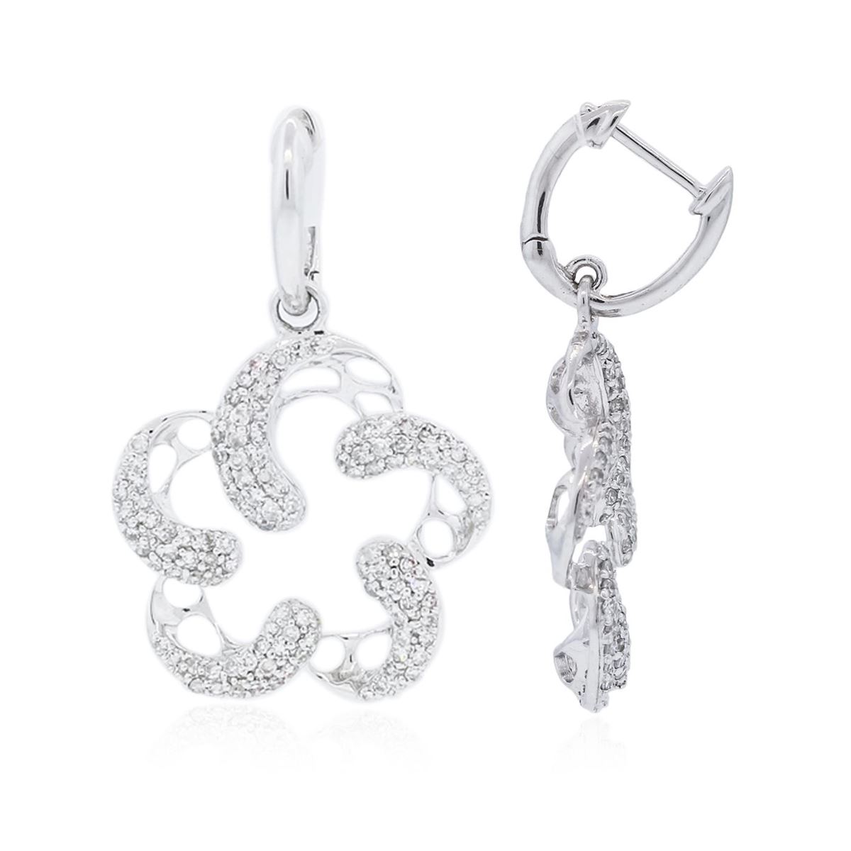 One pair of earrings featuring: 14KT white gold weighing 4.42 grams containing 224 round diamonds with a total weight of 0.95ct.