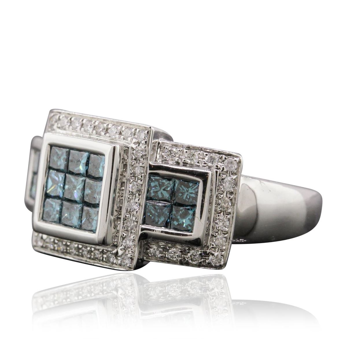 One ring featuring: 14KT white gold with a total weight of 6.96 grams, (17) blue diamonds with a total weight of 0.97ctw, and (52) diamonds with a total weight of 0.27ctw.