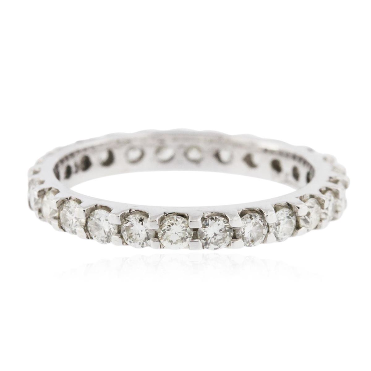 One ring featuring: 14KT white gold weighing 2.00 grams containing prong set round diamonds with a total weight of 0.98ct.