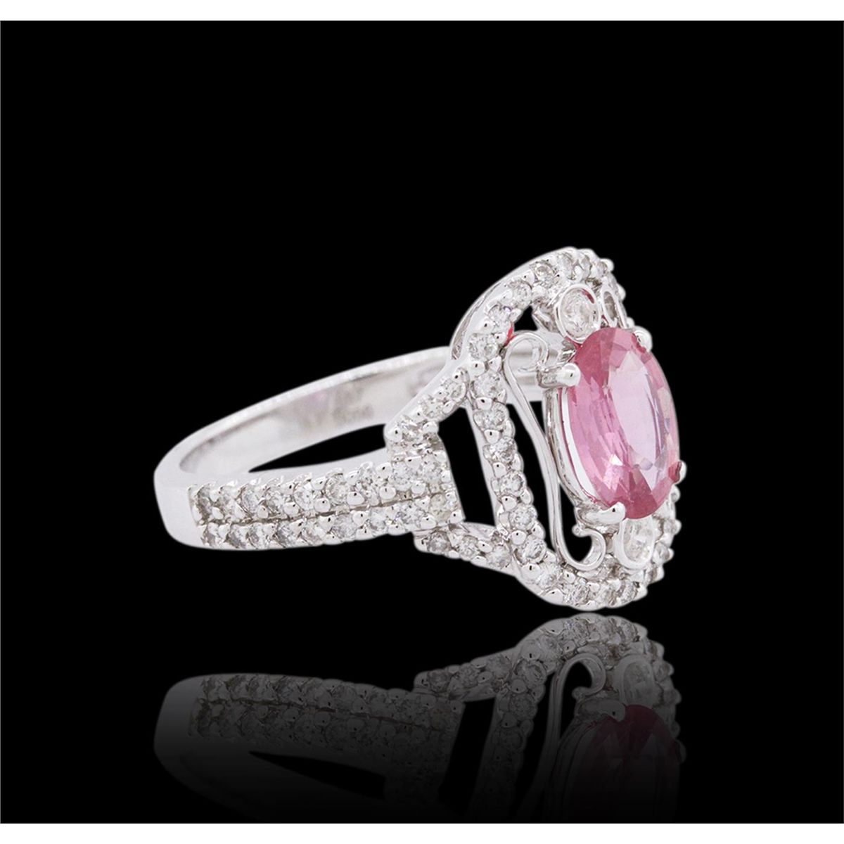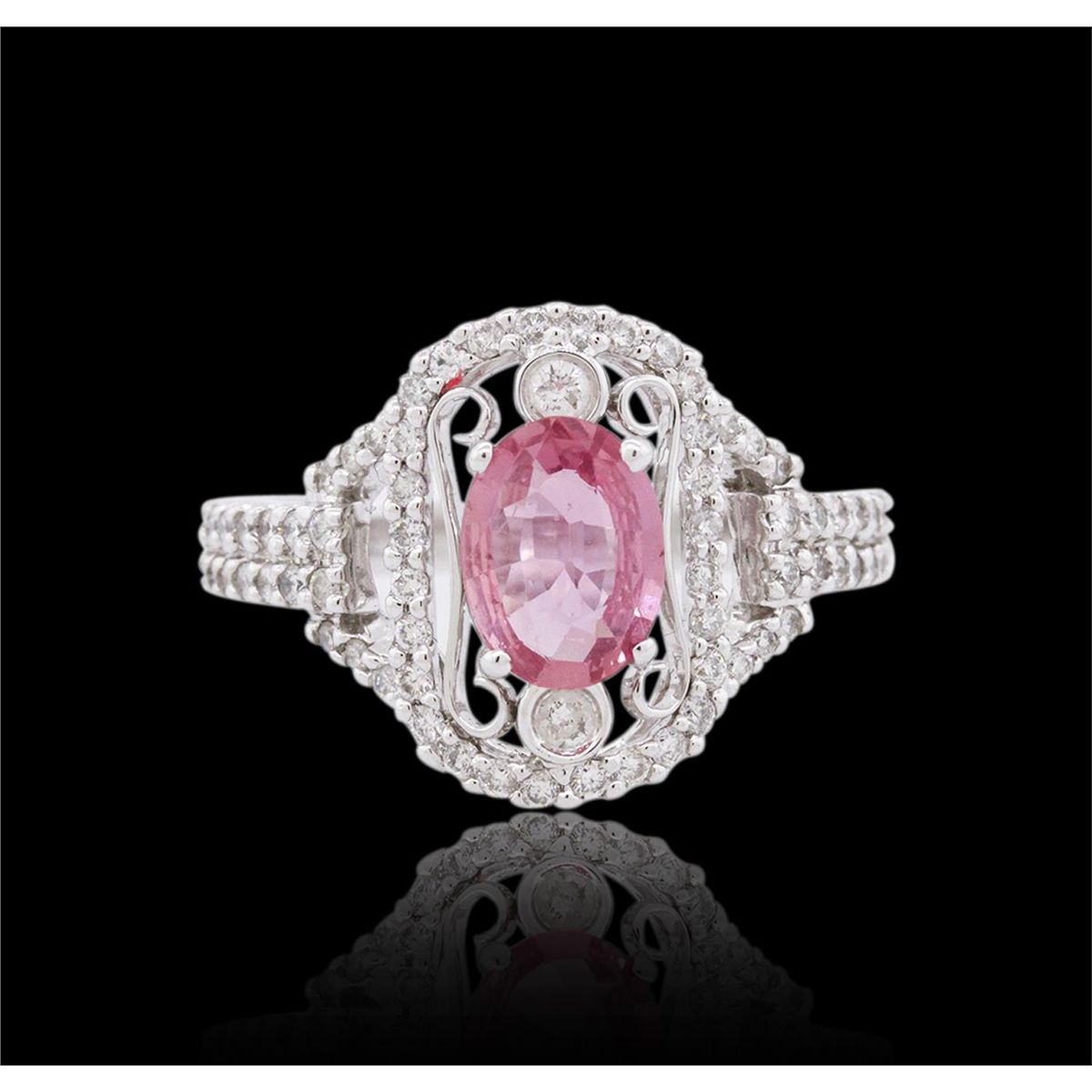 One ring featuring: 18KT white gold weighing 4.00 grams containing one pink sapphire center stone with a total weight of 0.99ct and 78 round cut diamonds with a total weight of 0.56cts.