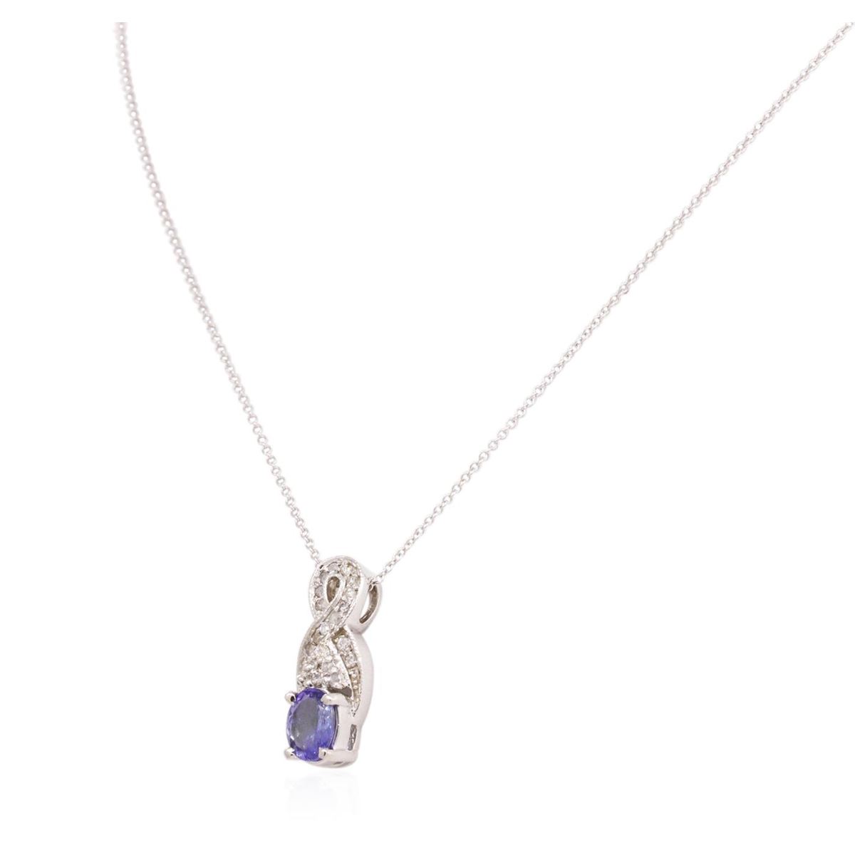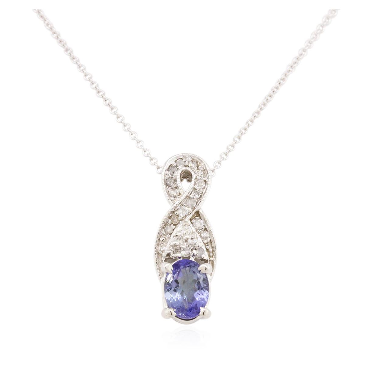 One pendant with chain featuring: 14KT white gold weighing 3.38 grams containing one sapphire with a total weight of 0.99ct and round diamonds with a total weight of 0.19cts.